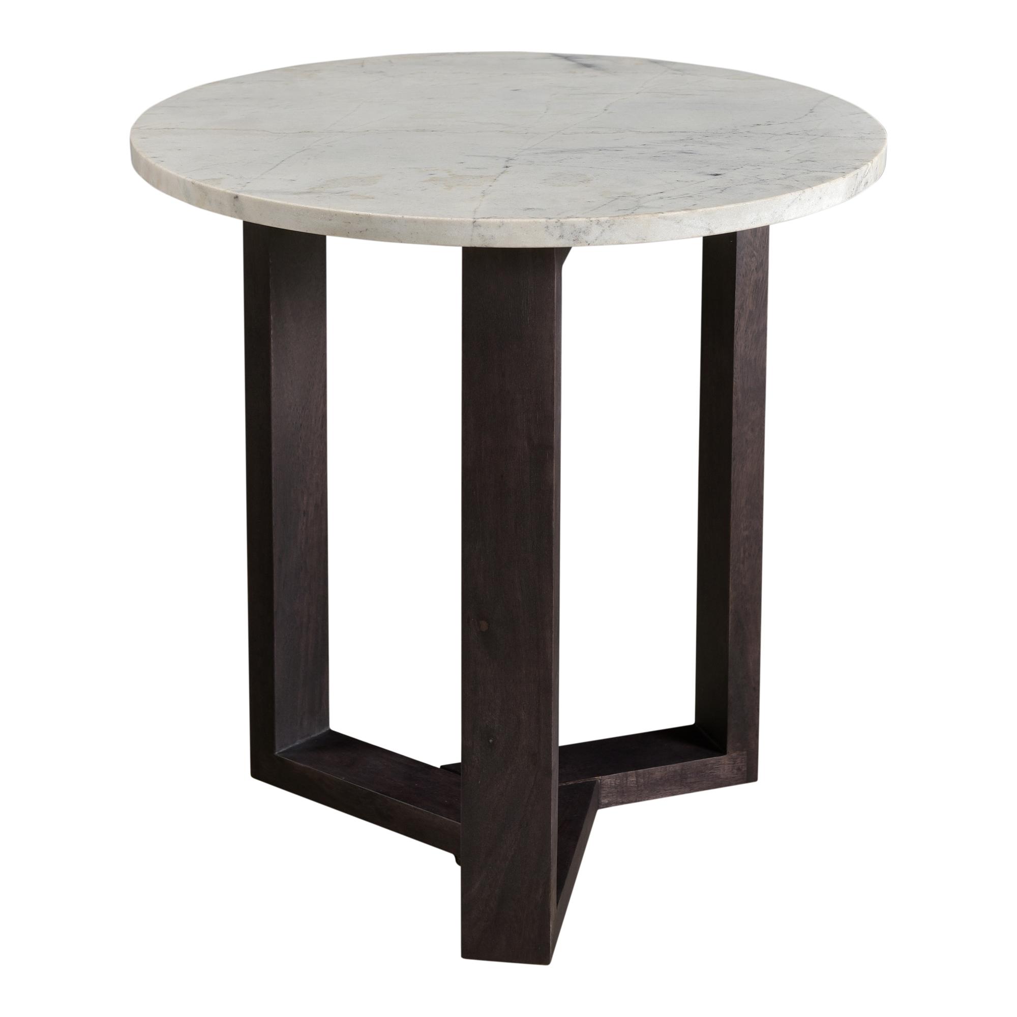 A classic staple that will transcend every dining situation. The Jinxx Side Table evokes modern simplicity with its geometric base made from solid acacia wood. Jinxx’s Satwaria marble tabletop is heavily veined with darker grey and charcoal striations, resulting in an attractive off-white tone. Please note that due to the natural variances in marble, each table will vary in tone & vein markings.