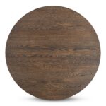 Crafted from solid oak, the Joel coffee table’s thick round top features a thoughtfully crafted V-groove, adding a visual lightness to the substantial surface. The geometric base, with crisscrossing stretchers, grounds the piece with quiet confidence. A dark brown, wire-brushed finish enhances the oak’s natural beauty, creating a focal point of understated elegance.