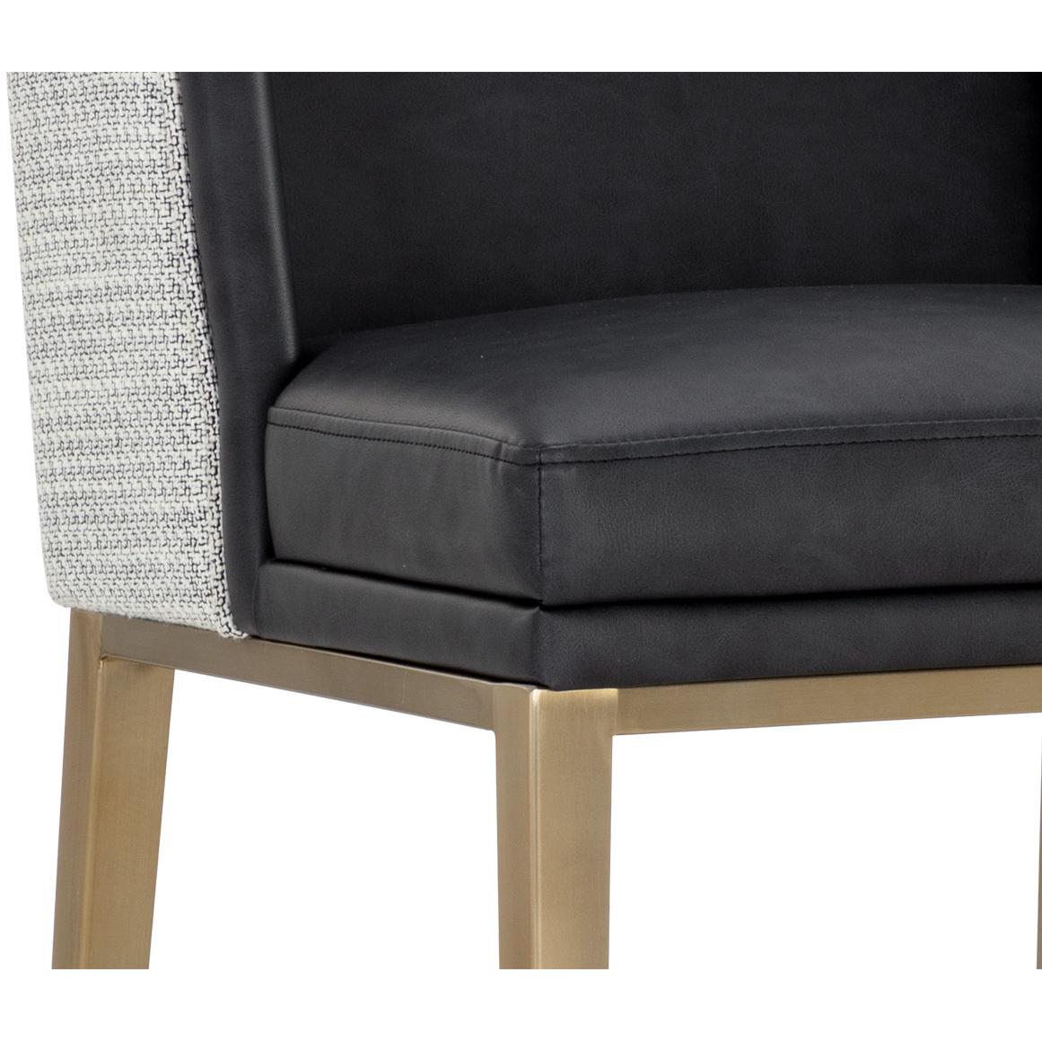 The Joplin Barstool introduces a dazzling array of textures and visual contrasts to any dining room. A stunning combination of smooth cantina black faux bonded leather and textured vera white pepper fabric adds a stylishly chic ambience that is sure to leave a lasting impression. Handle with Care: This design has been crafted with bonded leather. Bonded leather is a blend of reconstituted leather and synthetic materials crafted to reflect the natural characteristics of leather; as such, colour variations, markings, wrinkles, grooves and light scratches are acceptable and appreciated characteristics. No two pieces are alike. Visit our Product Care page for more information on how to ensure the lasting beauty of this piece