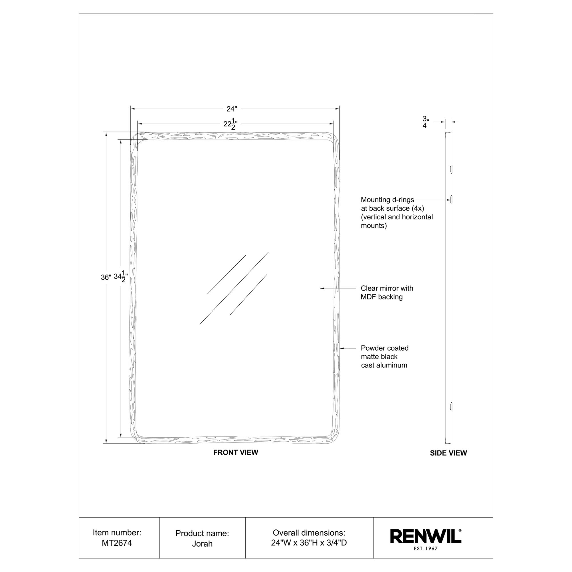 - Powder coated matte black finish