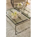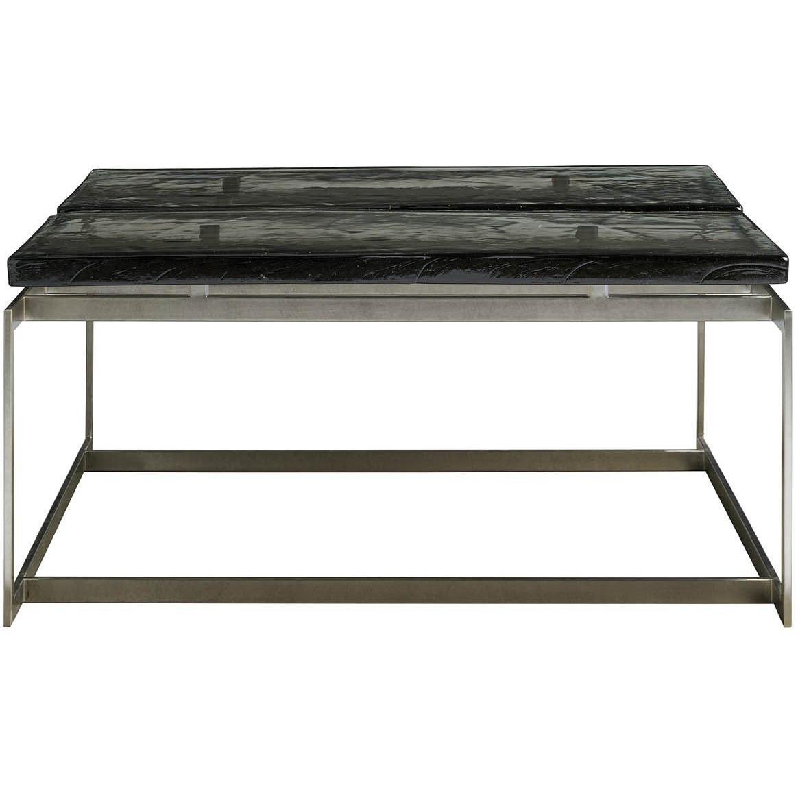 The Jordan Cocktail Table, a study in sleek sophistication, combines a smoked glass top with a striking stainless steel base finished in antique nickel. With its ethereal pattern, the glass top adds a layer of visual intrigue, while the metal frame provides a strong, modern foundation. This table is a captivating interplay of light and texture, elevating any living space.
