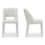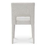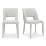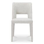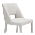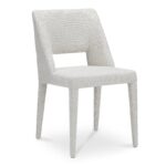 The Joyce dining chair’s fully upholstered silhouette flows seamlessly from seat to base, enveloping a sturdy iron frame with easy-to-clean performance fabric. A meticulously carved lower backrest adds visual lightness, while extended sides offer discreet arm support.
