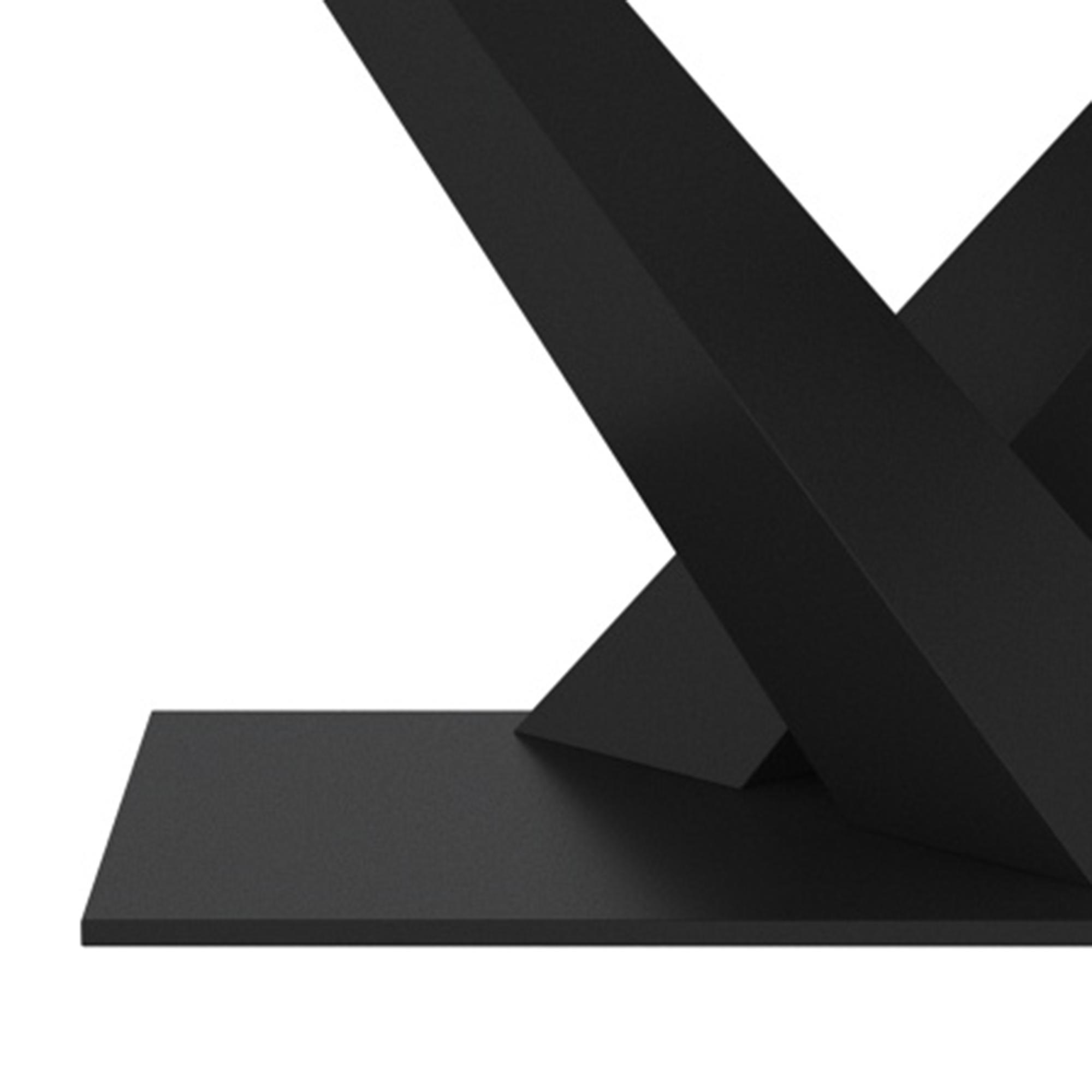 - Black metal, geometric cross-over pedestal base