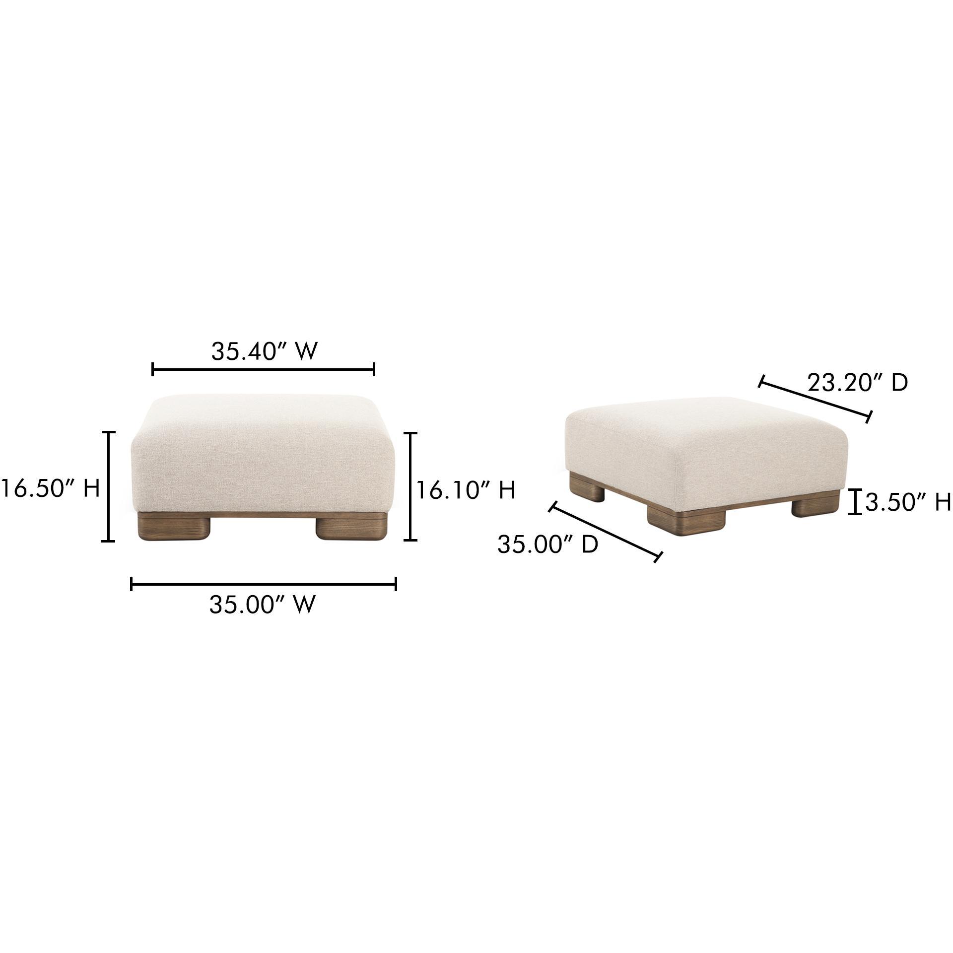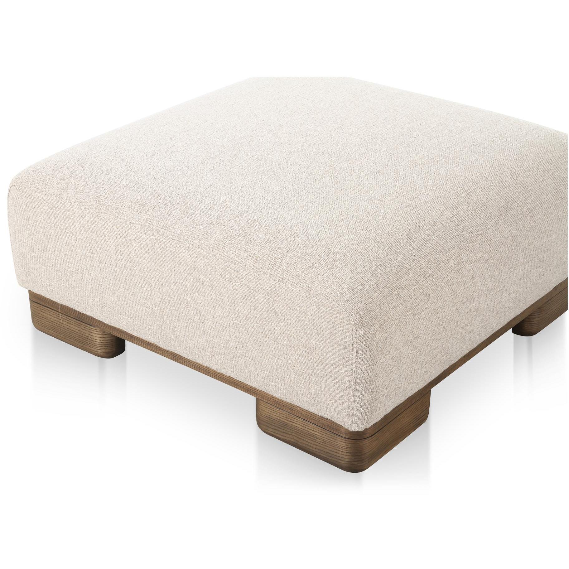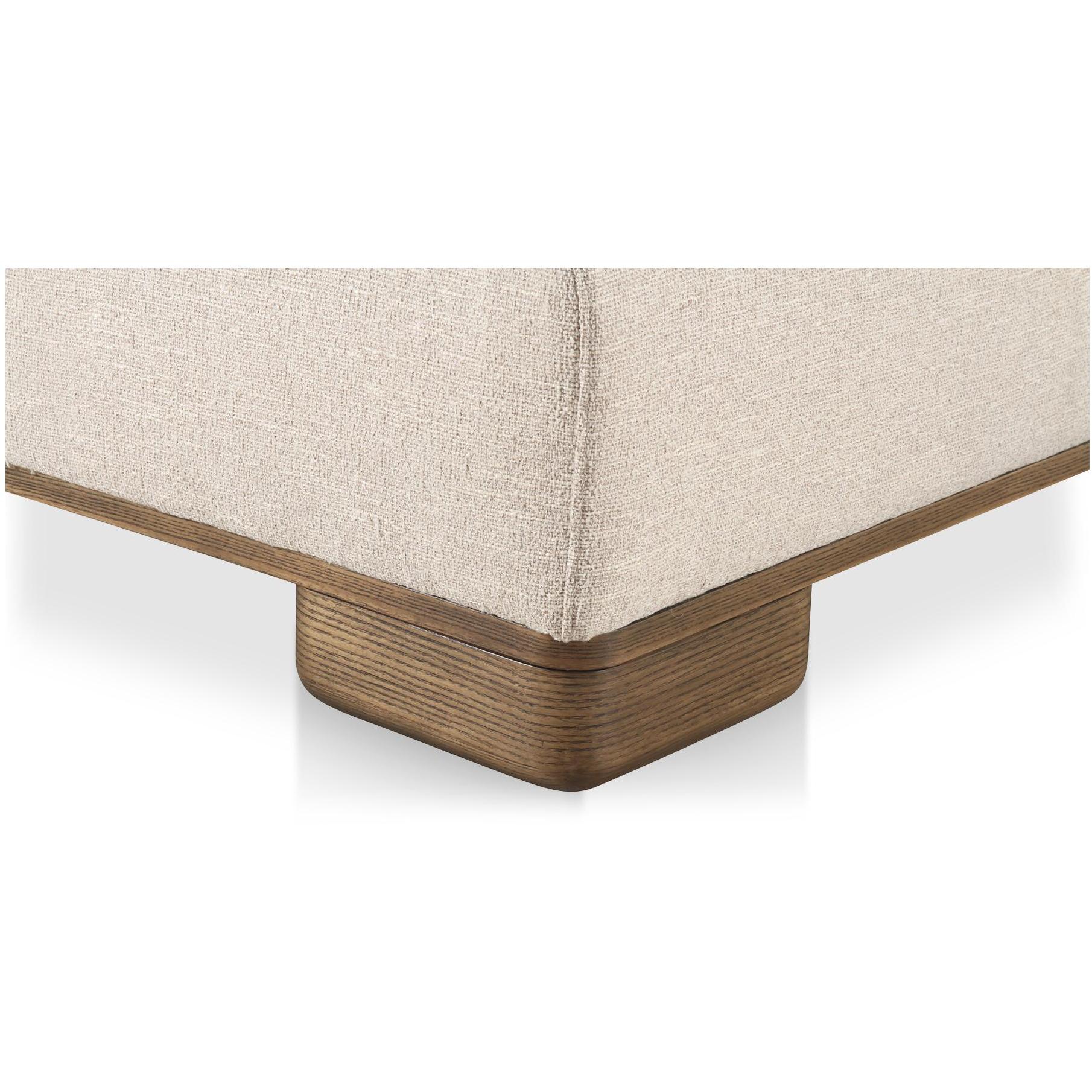 Meet June—the ottoman that refuses to be one thing. Designed as a modular component, it works as a free-standing piece, a sectional add-on, or an extra perch when seating gets competitive. Oatmeal-toned, textured upholstery pairs with oversized oak veneer legs for a grounded, modern profile. Inside, foam, feather, and fiber fill creates a pillow-like top, supported by a solid wood and plywood frame. Put your feet up, then move it again wherever the room needs it.