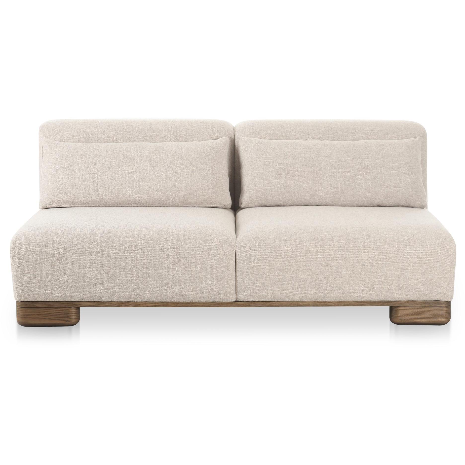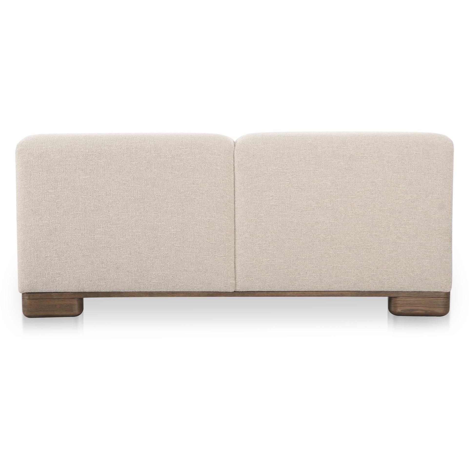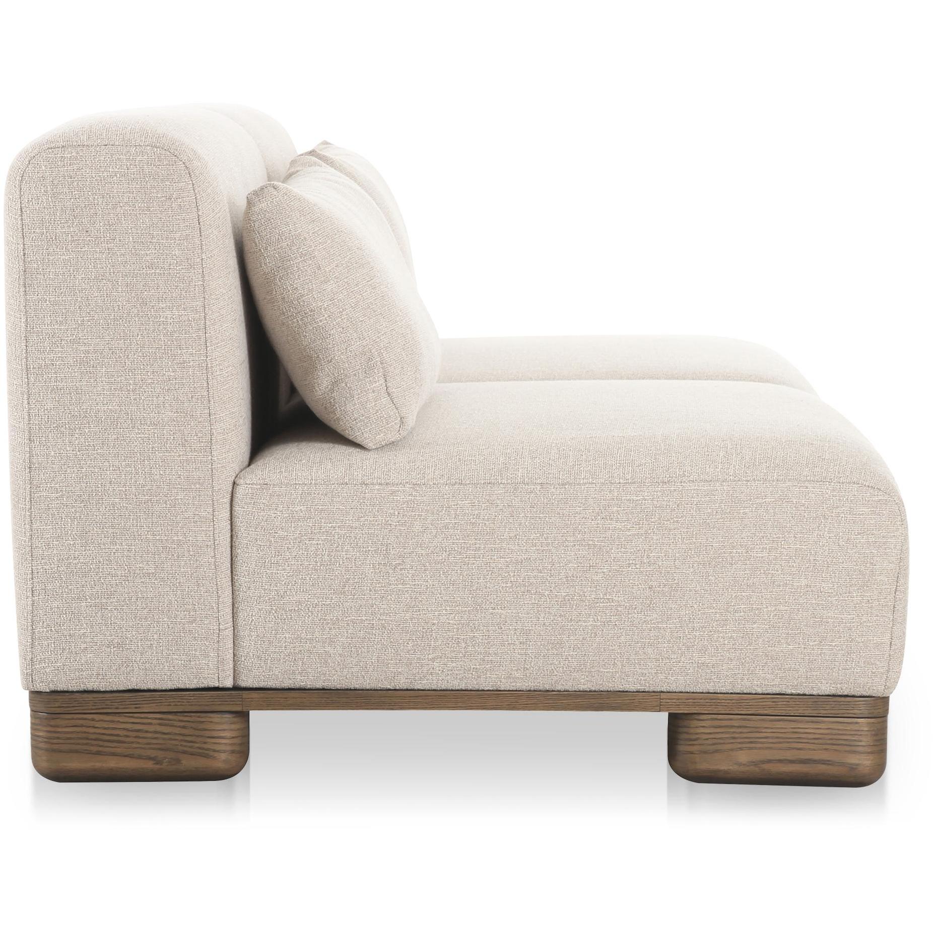 Meet June—the sofa that makes canceling plans feel responsible. Designed with modular components, it works as a free-standing piece today and a sectional configuration tomorrow. Oatmeal-toned, textured upholstery pairs with oversized oak veneer legs for a grounded, modern profile. Inside, foam, feather, and fiber fill creates that pillow-like sink-in feel, supported by a solid wood and plywood frame. Finish it with lumbar toss cushions, and the living room stays booked—on repeat with you in the center.