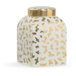 The smallest member of the ginger jar trio featuring a unique metallic satin gold cheetah print. (Available in a variety of colors: search Jungle Ginger). Designed by Shayla Copas.
