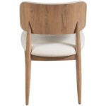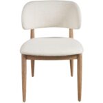 The Juno Side Chair, available in a Natural Oak finish, marries sleek minimalism with cool geometric inspiration. Its Berber Snow fabric seat contrasts beautifully against angled legs, creating a piece that’s as visually engaging as it is comfortable, embodying the essence of modern sophistication.