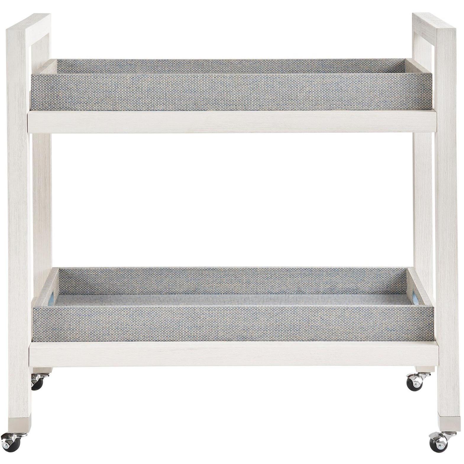 Built for both style and convenience, the Jupiter Bar Cart showcases removable, wallpaper-wrapped trays nestled within a clean white frame. Plus, its casters make the furnishing ideal for moving about from one place to the next depending on the occasion.