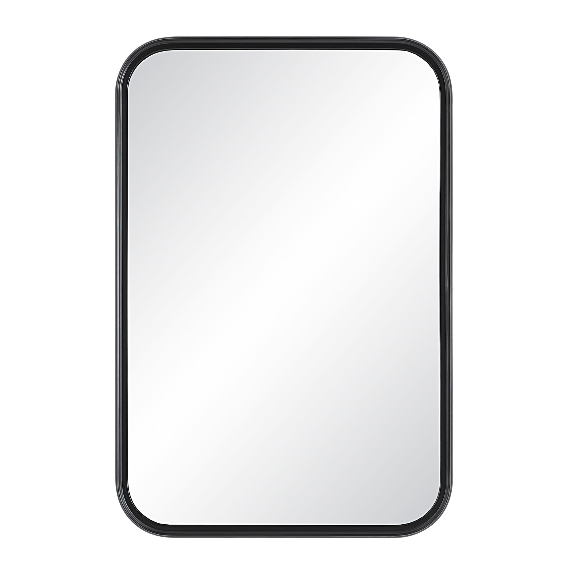 Softly rounded corners make the stylish Kaja mirror stand out from the crowd. Constructed with a lightweight yet sturdy aluminum frame, hanging this wall art mirror is easy. Plus, its 2-way D-ring hanging system lets you display the mirror either vertically or horizontally wherever you want. A matte black powder-coated frame holds clear mirrored glass that provides a distortion-free reflection that’s only available to high-quality mirrors like this one. Well-suited to decorating styles from mid-century modern to rustic farmhouse and everything in between, this is the perfect piece to add an updated touch to any space.