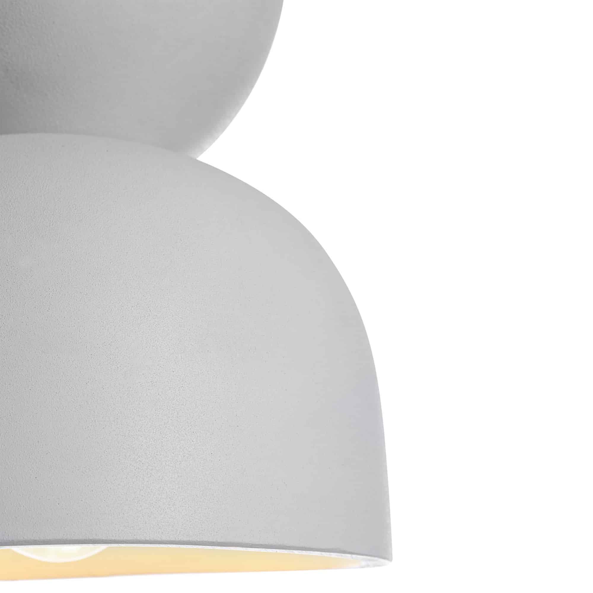 An inherent serene quality pours out of this light ceiling fixture and into the business or home it hangs within. Equally suited for a commercial or residential space, the cool quality of the ceiling fixture’s cement construction contrasts and compliments its neighboring textures and tones with ease. Whether hanging solo or multiples, it will provide utility in the form of soft glowing light, in addition to its aesthetic accolades.