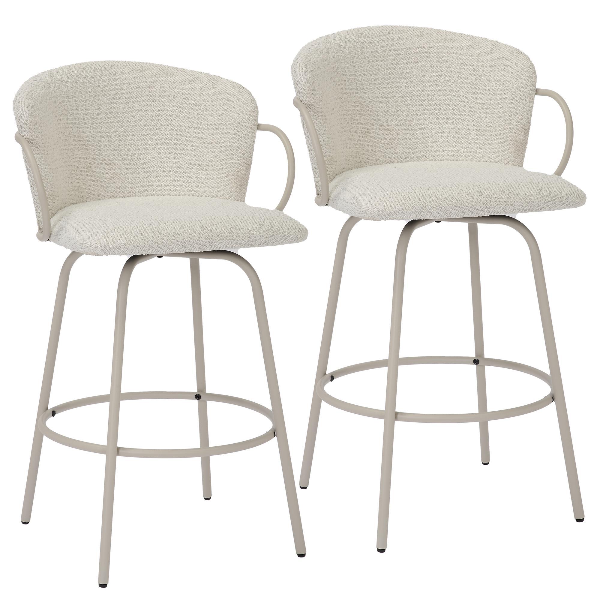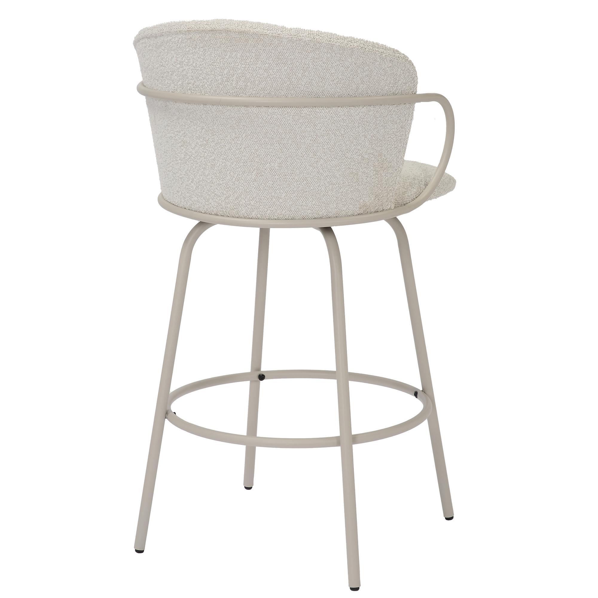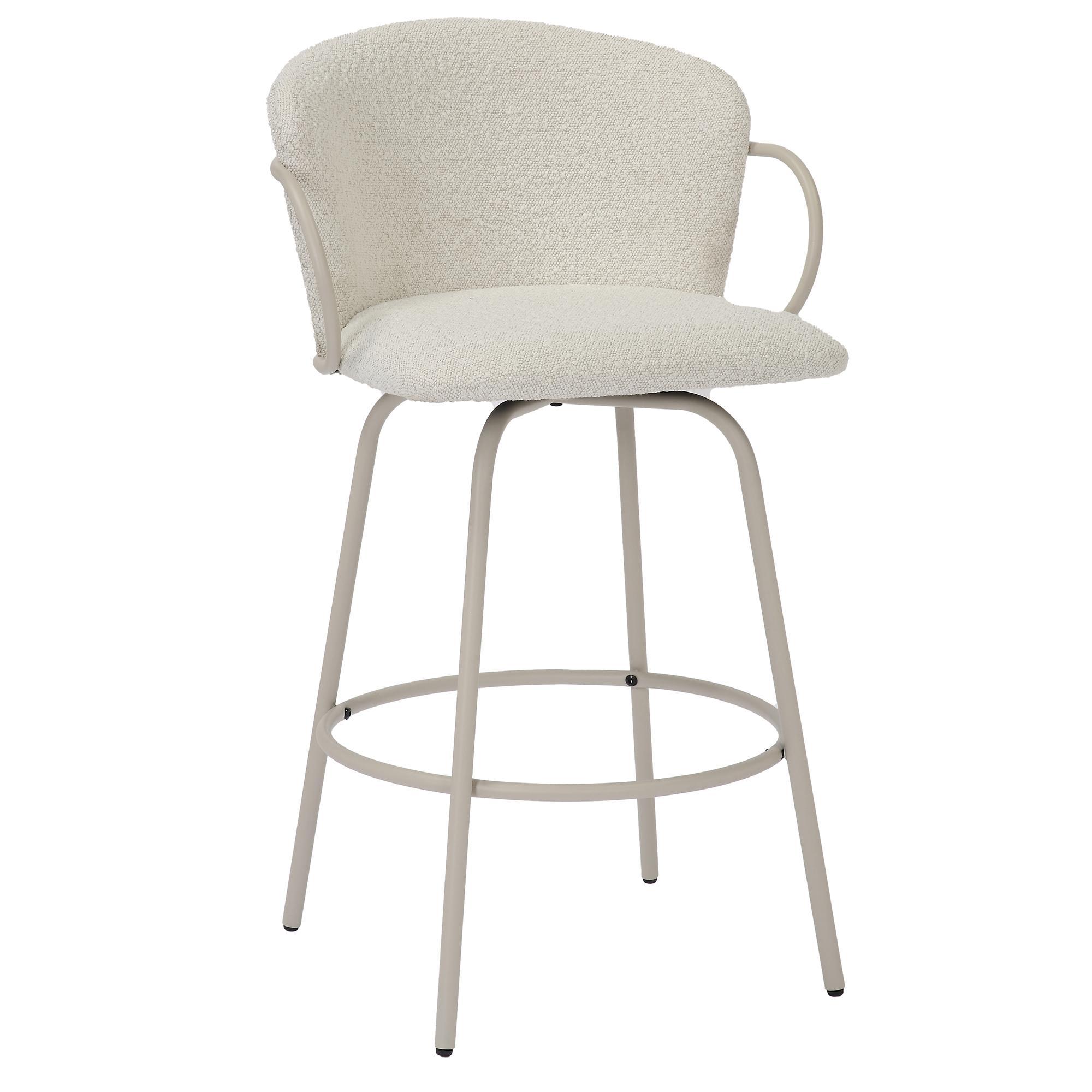 Whether you’re enjoying a casual meal or entertaining guests, this stool provides the perfect perch with an inviting, timeless appeal. Fixed height counter stool has full-swivel seat, making conversations fun and easy. The textured boucle fabric is a an easy match to any decor style.
