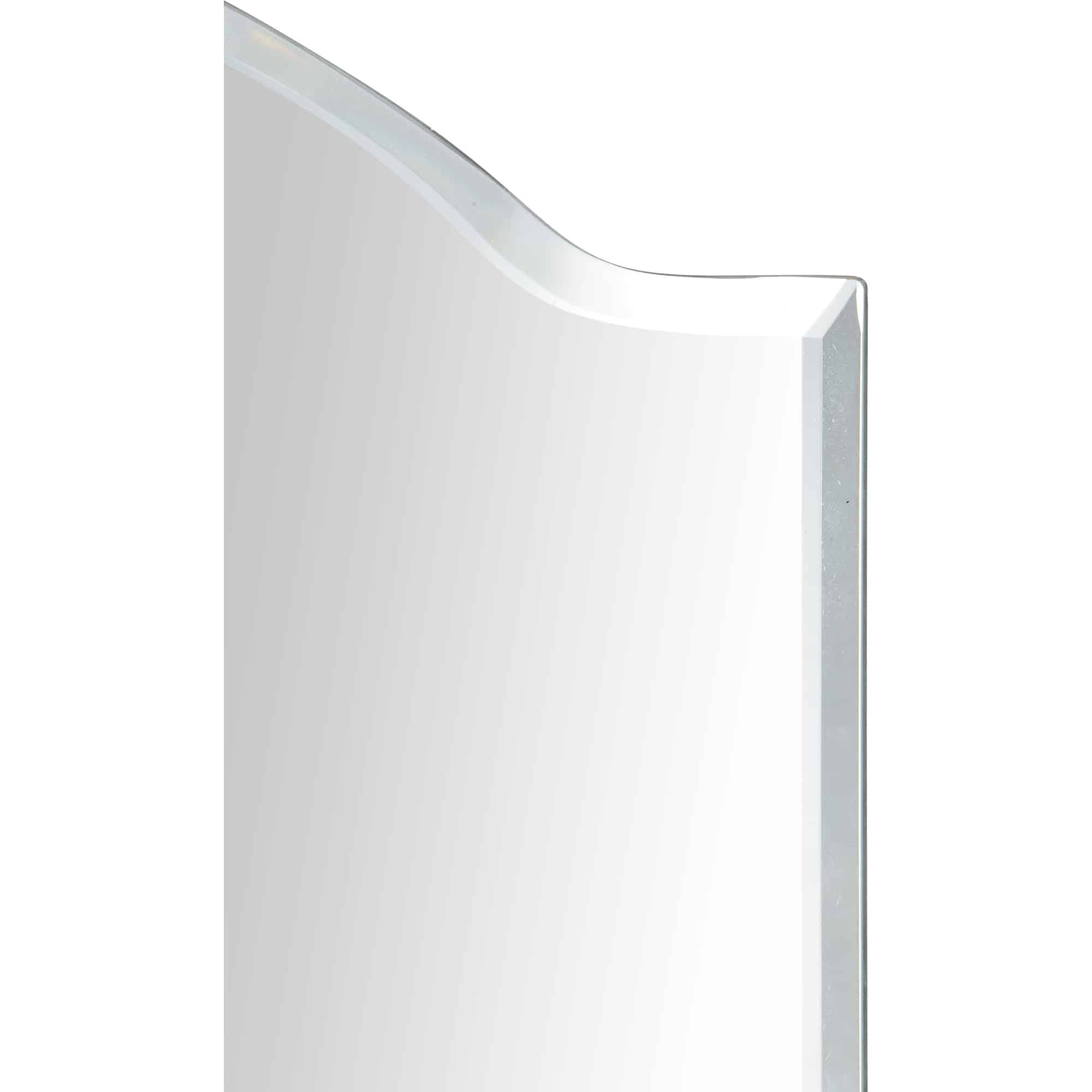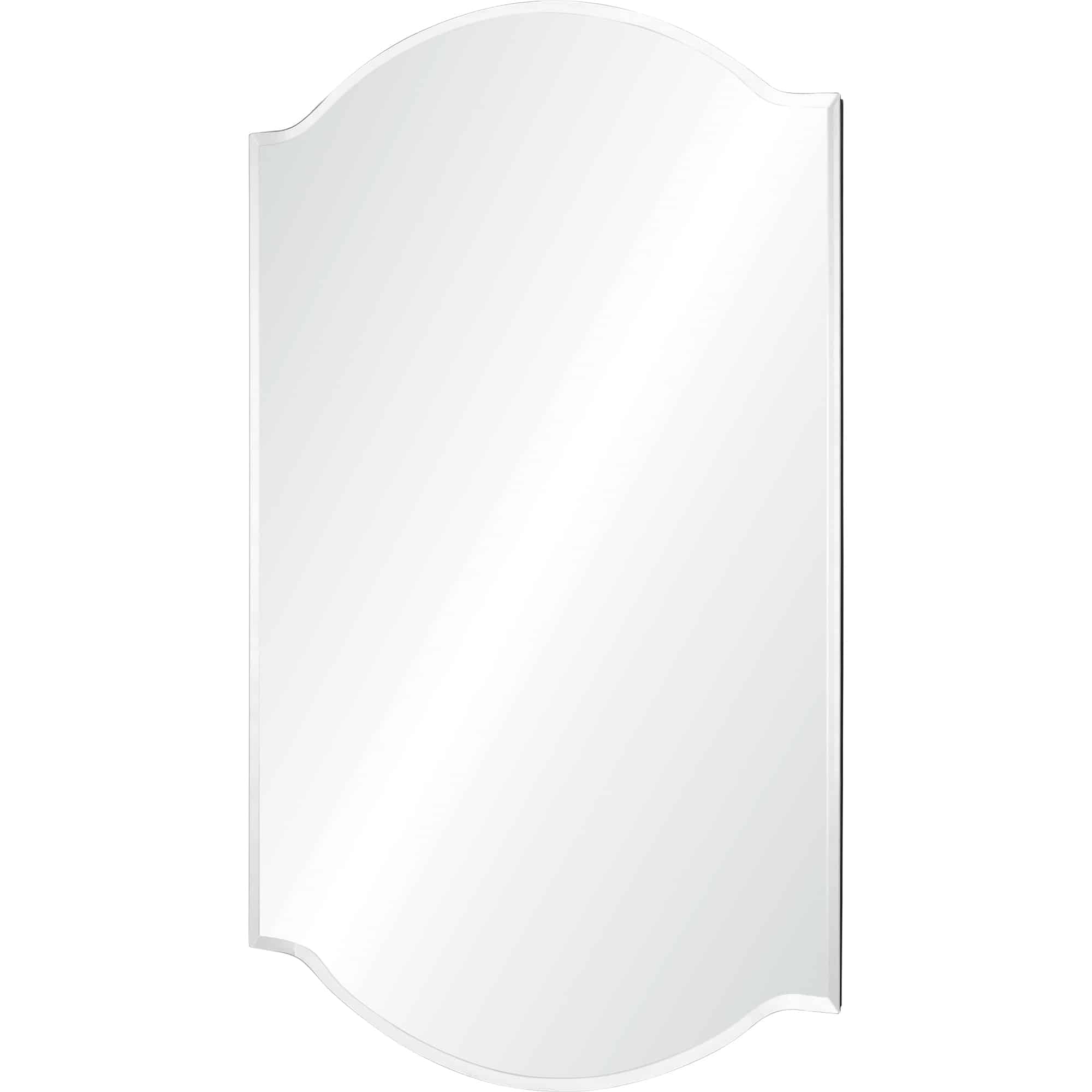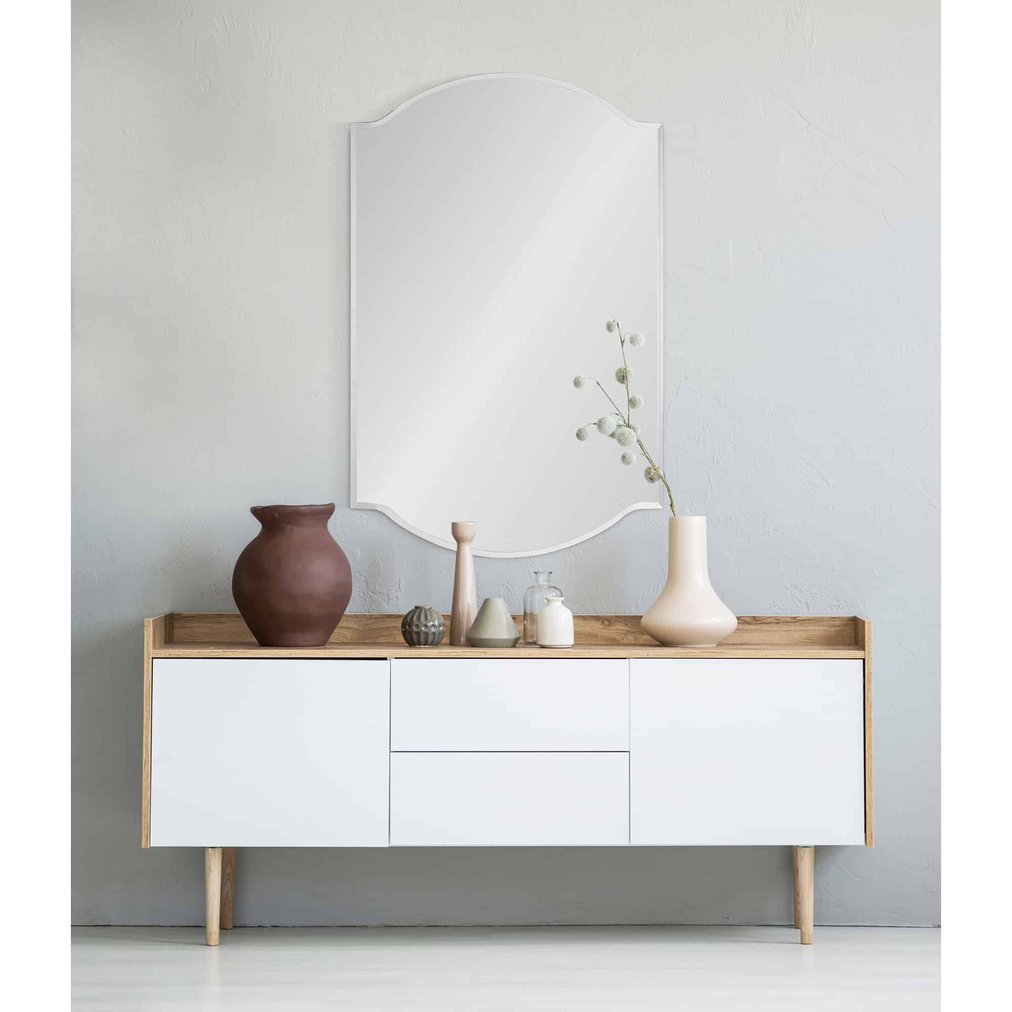 Grandeur and grace enter the traditional living room with this elegant mirror design. Hung vertically or horizontally, it captures and reflects the beauty of the interior. With its flowy all-glass design, it needs no additional details to make an impression.