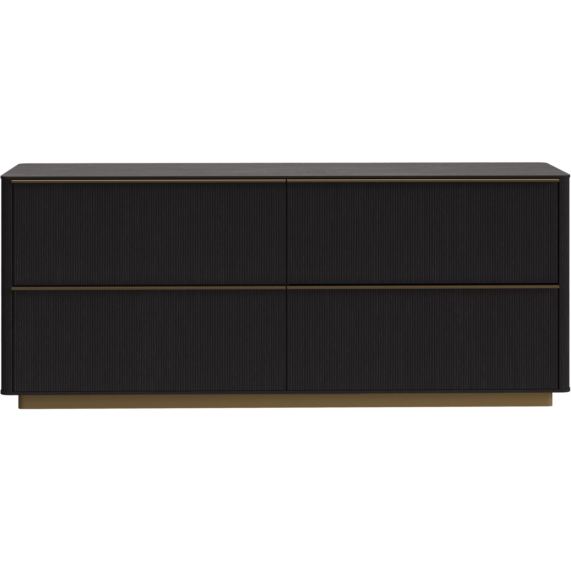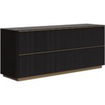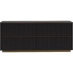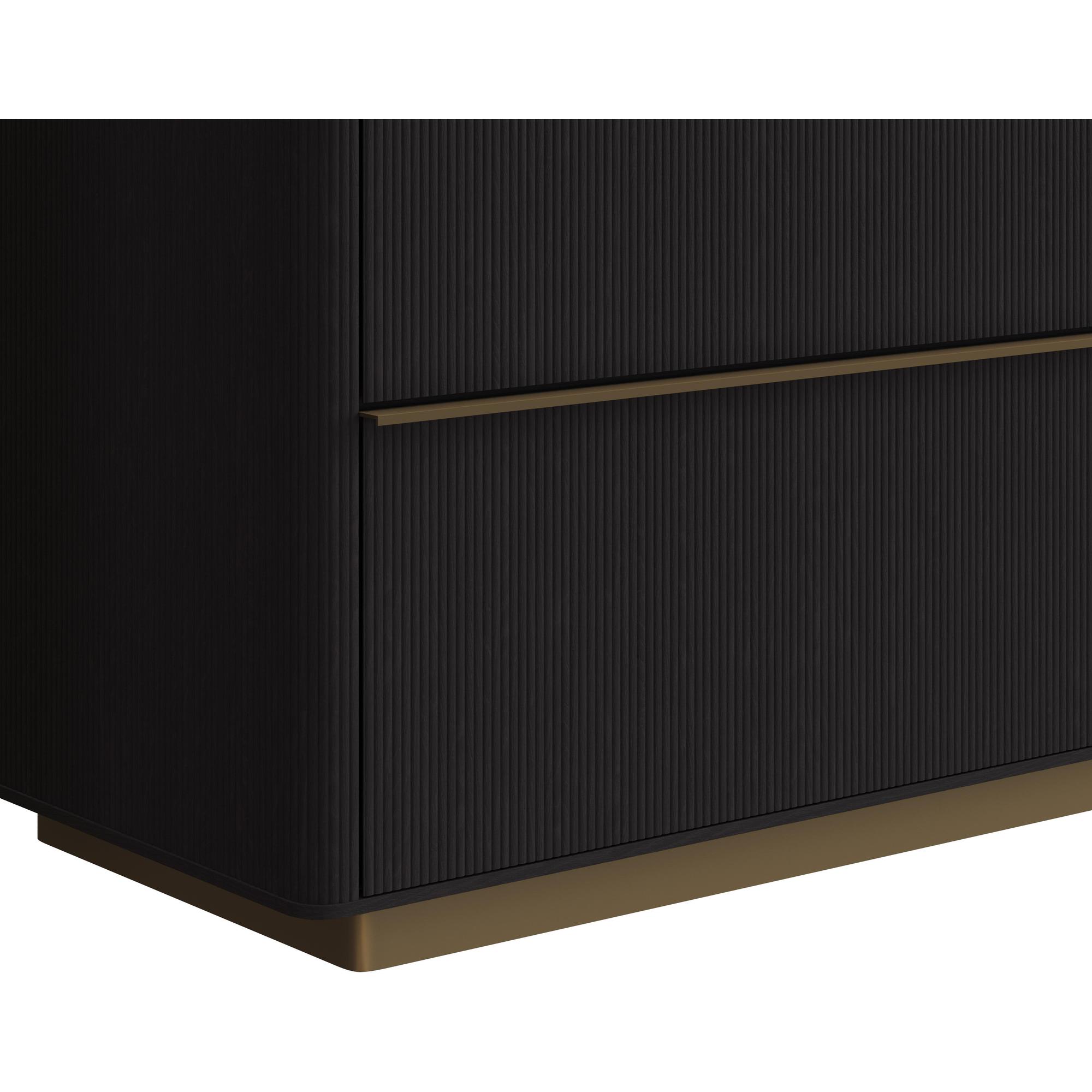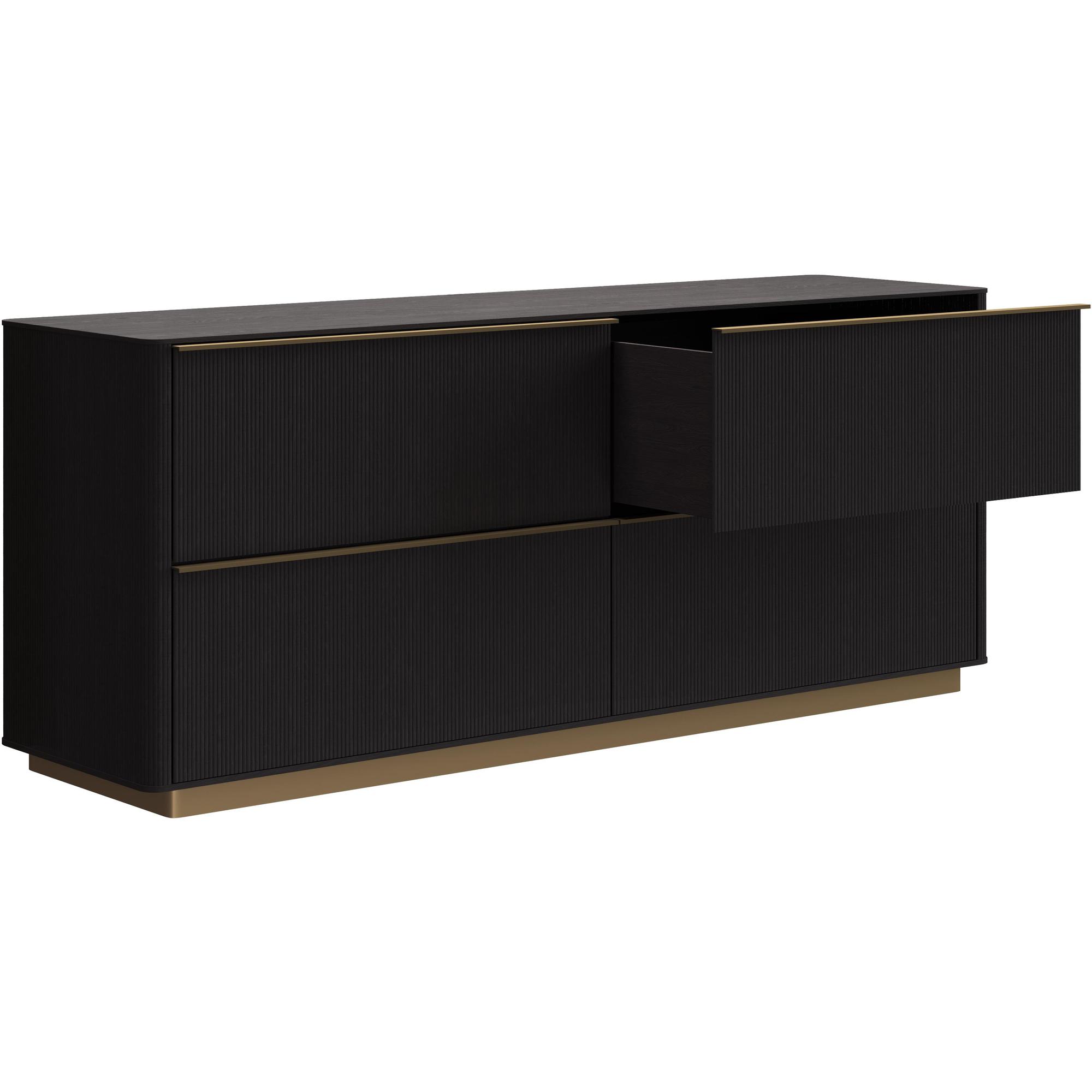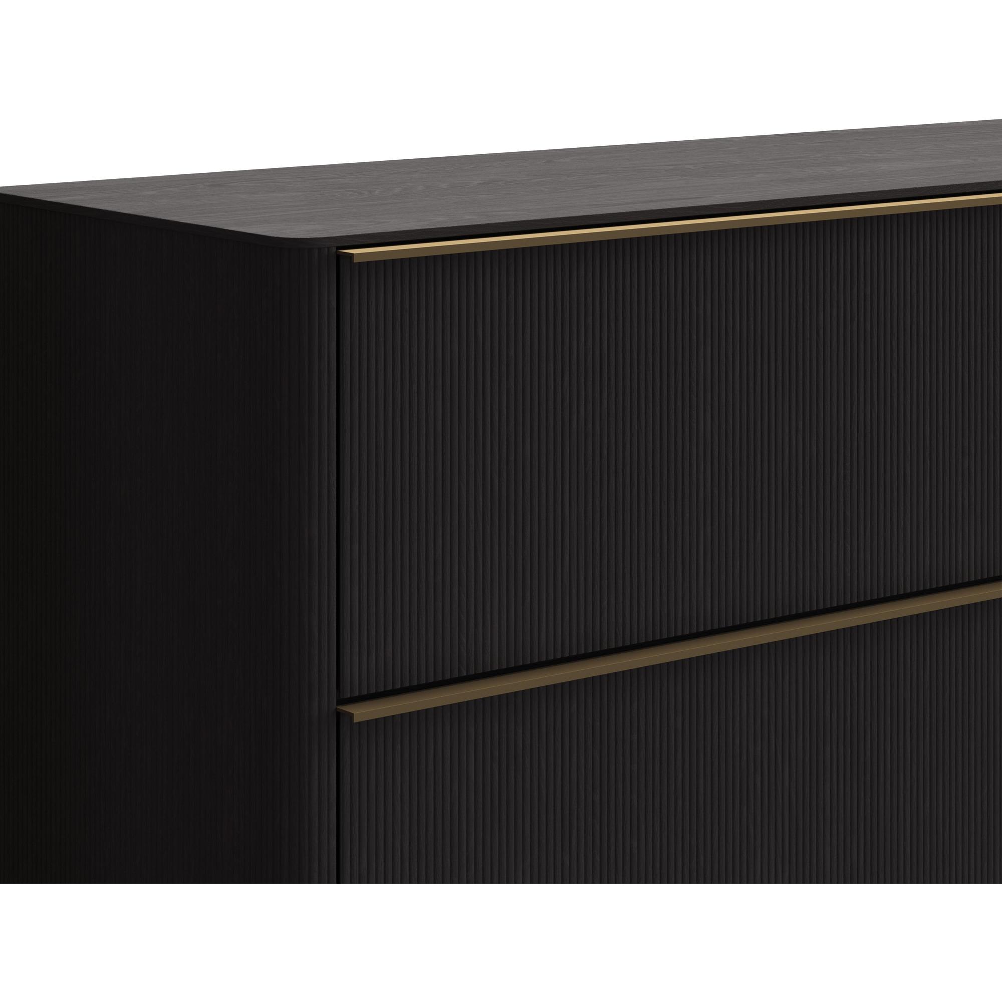 The Kalla Dresser brings form and function to life. Crafted with a rustic oak veneer with vertical reeding. A gold steel base finishes the look. As wood is an organic, porous material, these pieces will contain natural variation of texture and may also exhibit fine indentations and cracks. Wood pieces will also display a disparity of colour and grain, and visible knots and burls that add to the character of each piece.
