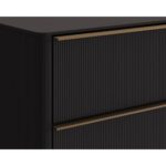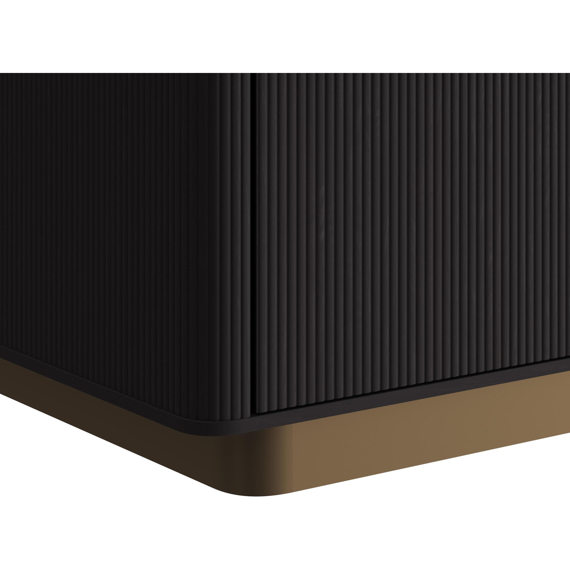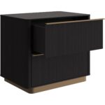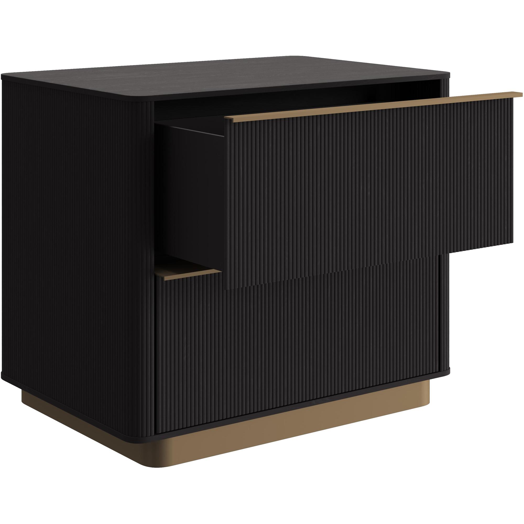 The Kalla Nightstand brings form and function to life. Crafted with a rustic oak veneer with vertical reeding. A gold steel base finishes the look. As wood is an organic, porous material, these pieces will contain natural variation of texture and may also exhibit fine indentations and cracks. Wood pieces will also display a disparity of colour and grain, and visible knots and burls that add to the character of each piece.