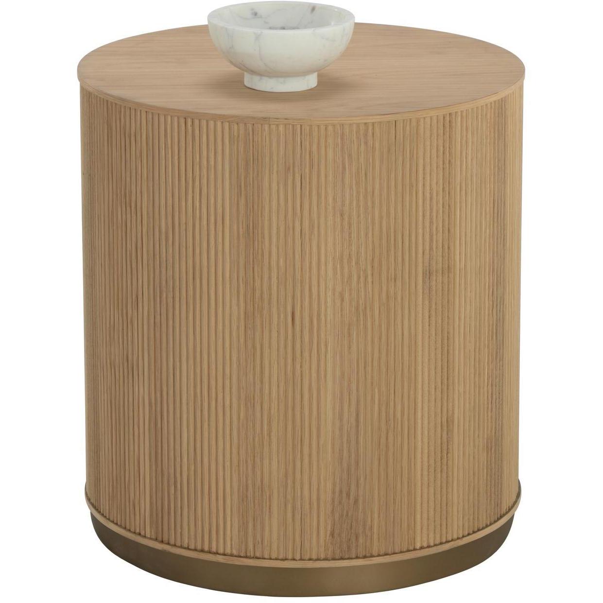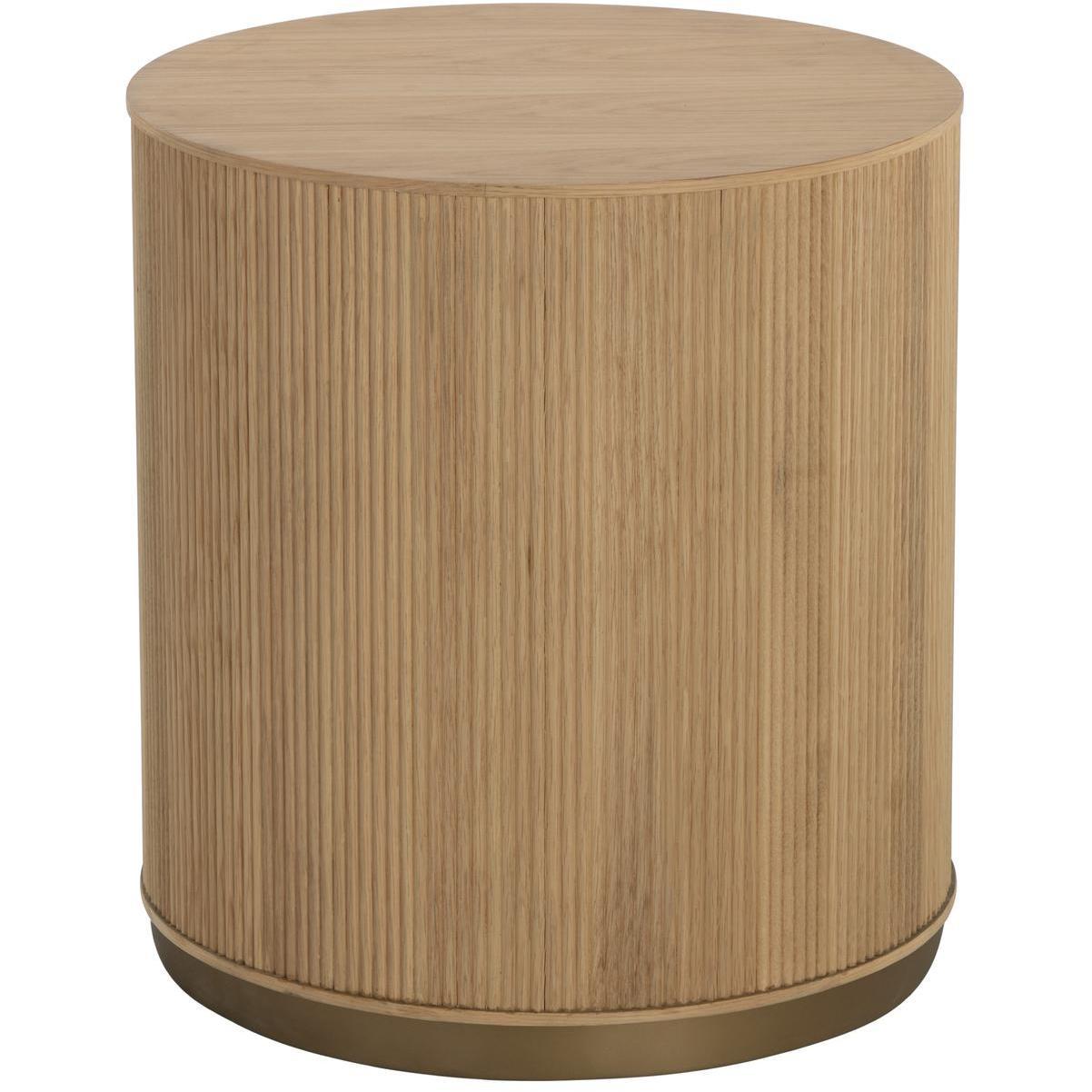 The Kalla Side Table brings form and function to life. Crafted with a rustic oak veneer with vertical reeding. A gold steel base finishes the look. As wood is an organic, porous material, these pieces will contain natural variation of texture and may also exhibit fine indentations and cracks. Wood pieces will also display a disparity of colour and grain, and visible knots and burls that add to the character of each piece.