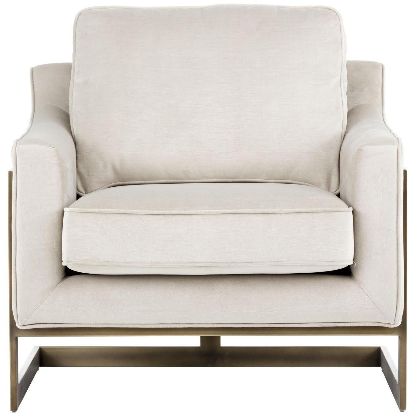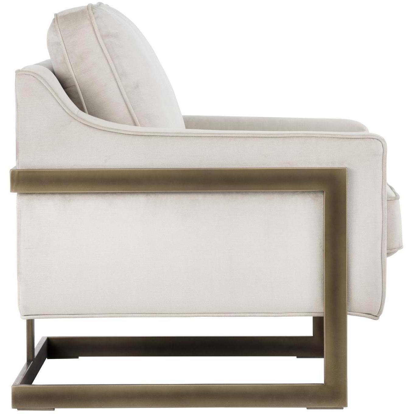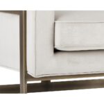 Conversations will flow while seated on this handsome lounge chair. Designed with deep seating, a cushioned back and piping detail for a comfortable addition to transitional spaces. Stocked in our soft piccolo prosecco performance fabrics with an exposed rustic bronze steel frame. Performance fabric is moisture repellent, durable and easy to clean.
