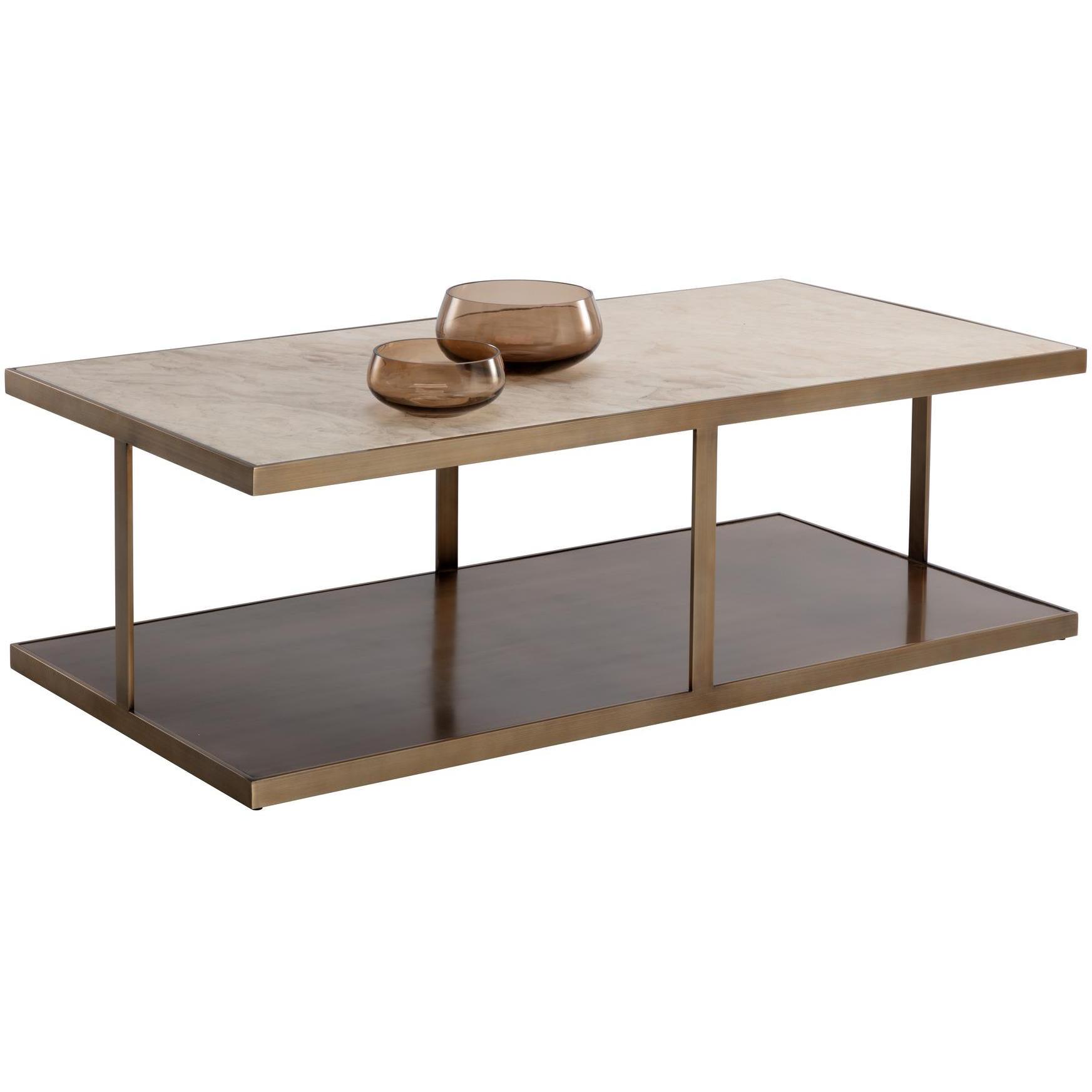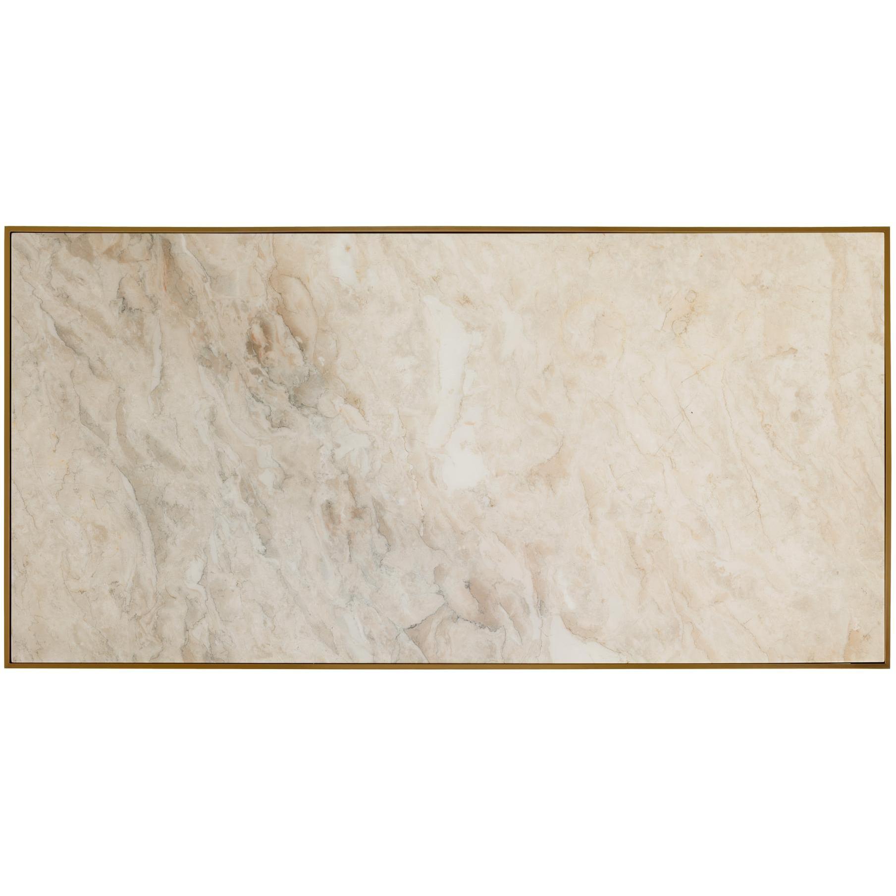 Warm tones and sleek modern lines define the Kamali Coffee Table. The beige rectangular marble tabletop is beautifully outlined by an antique gold powder coated stainless steel base. It’s the perfect addition to any living space. Side table version also available. As marble is a natural material, unique veining, pitting, fissures, micro-cracks and colour variations are all characteristics that add to the uniqueness and beauty of each piece.
