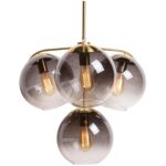 Boasting a beautiful cluster design, this modern chandelier is a fabulous addition to any space. Features four clear and grey glass shades with a metal frame in a brass finish.