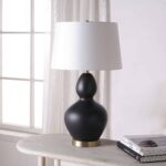 Bold and sleek, this table lamp design has a luxe air that sets the tone for any room it rests within. An idyllic fit for the client with a mid-century modern or contemporary interior, the black and antique brushed brass tones have a dramatic impact on the space. Whether the set of table lamps is styled on bedside tables, living room, side tables or an entryway, each one will only enhance the other’s aesthetic appeal.