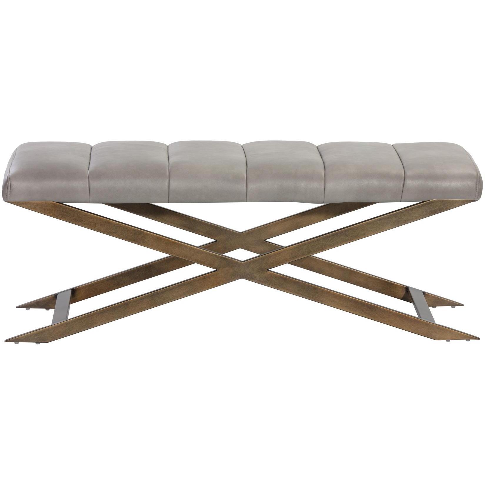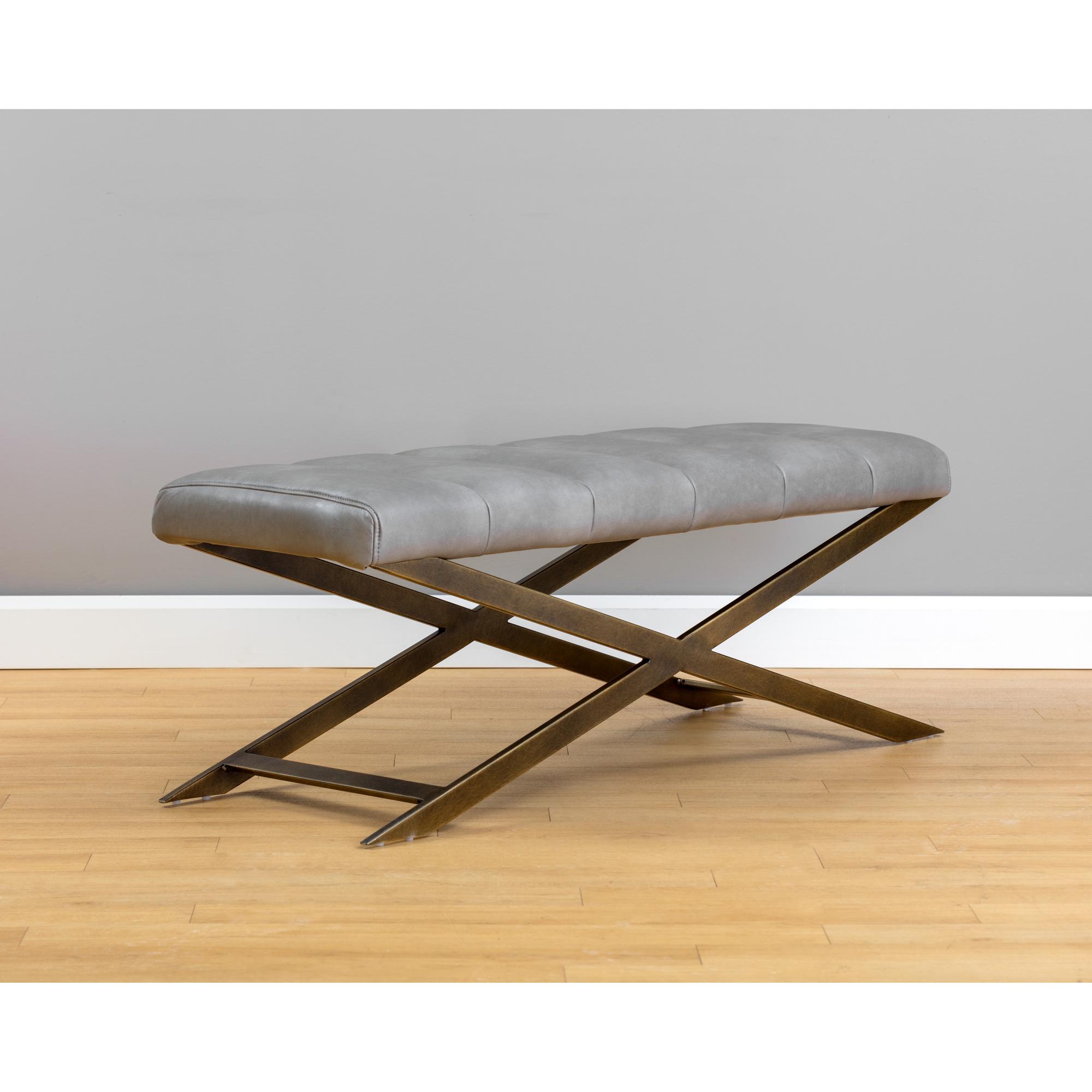 An elegant bench designed with modern warmth. Designed with channel tufting and an antique brass x-base. Available in bravo metal faux leather. Handle With Care: This design has been crafted with faux leather. Faux leather is manufactured to reflect the natural characteristics of leather; as such, colour variations, markings, wrinkles, grooves, and light scratches are appreciated characteristics. No two pieces will be alike. Visit our Product Care page for more information on how to ensure the lasting beauty of this piece.