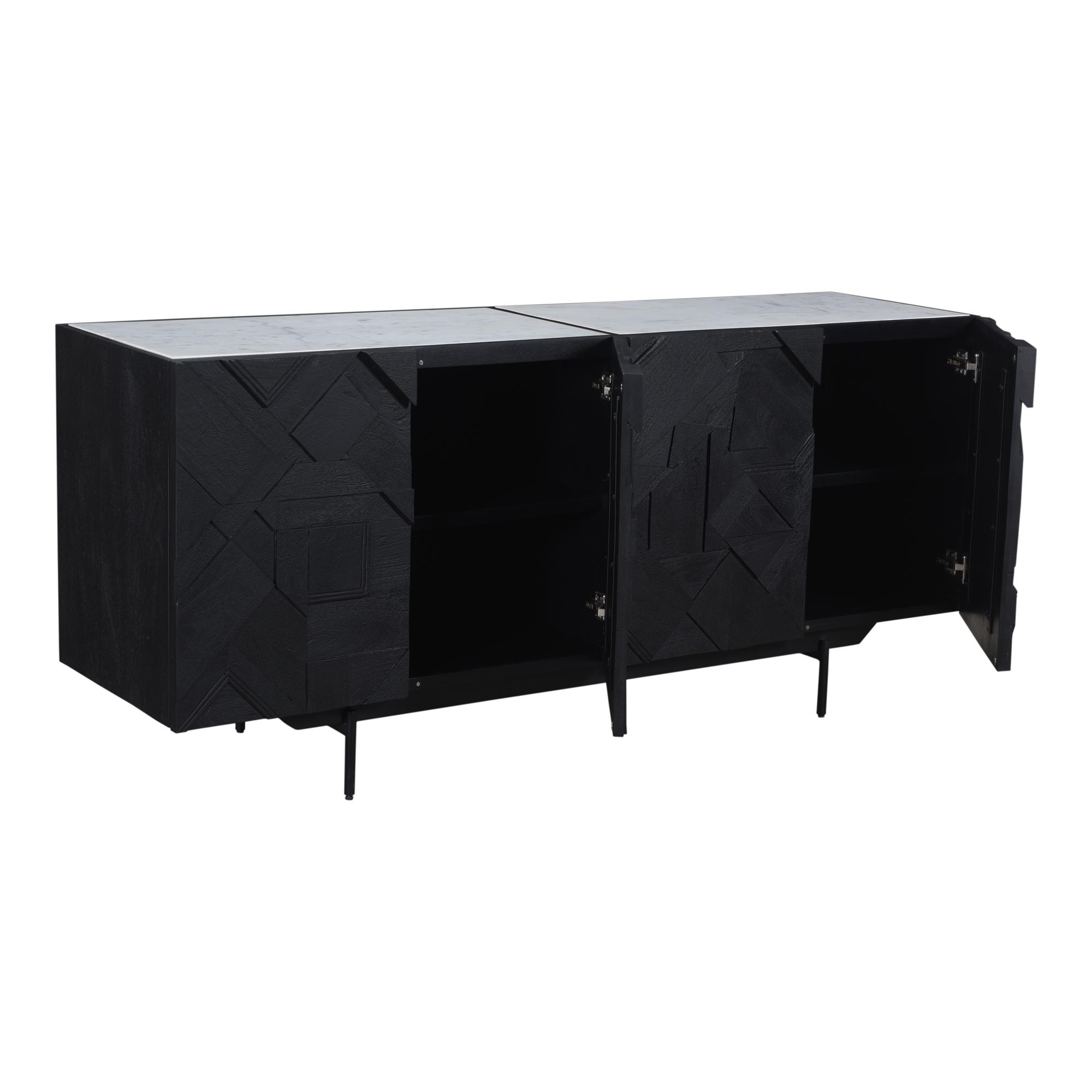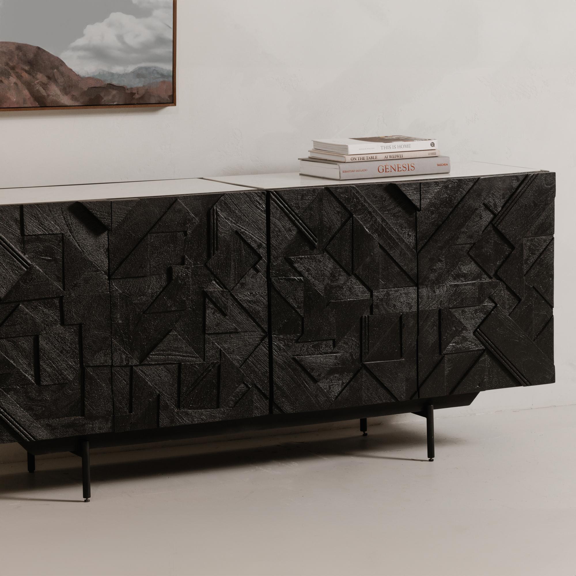 Fitted with barn doors, this sideboard buffet is large and spacious. The Kattan Sideboard is made with sustainable mango wood, which is both strong and durable. The white marble top finishes off the look, making it a head turner for any contemporary modern décor.