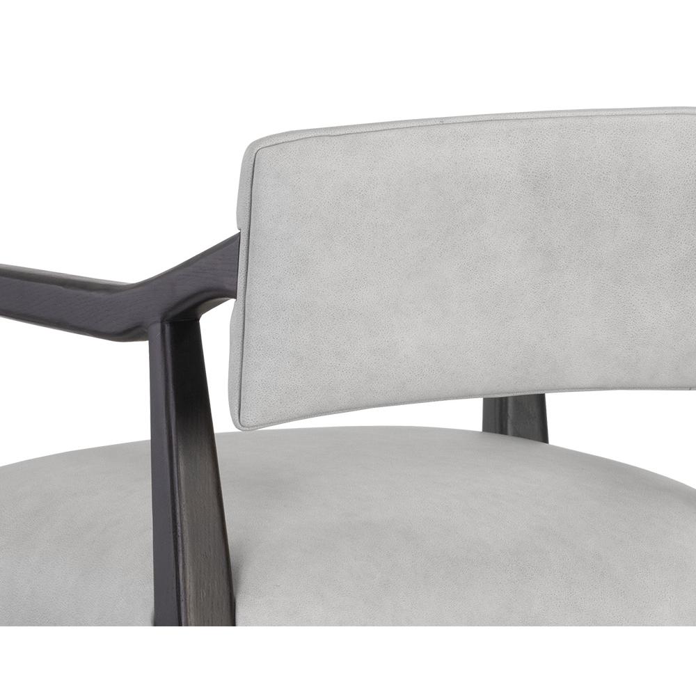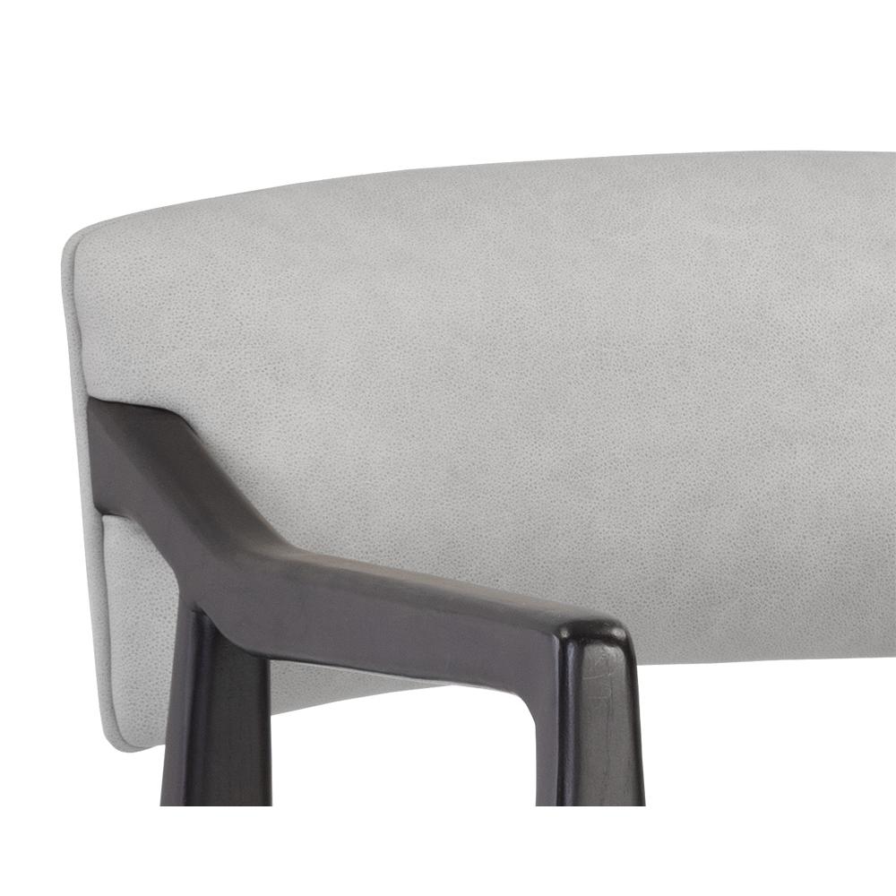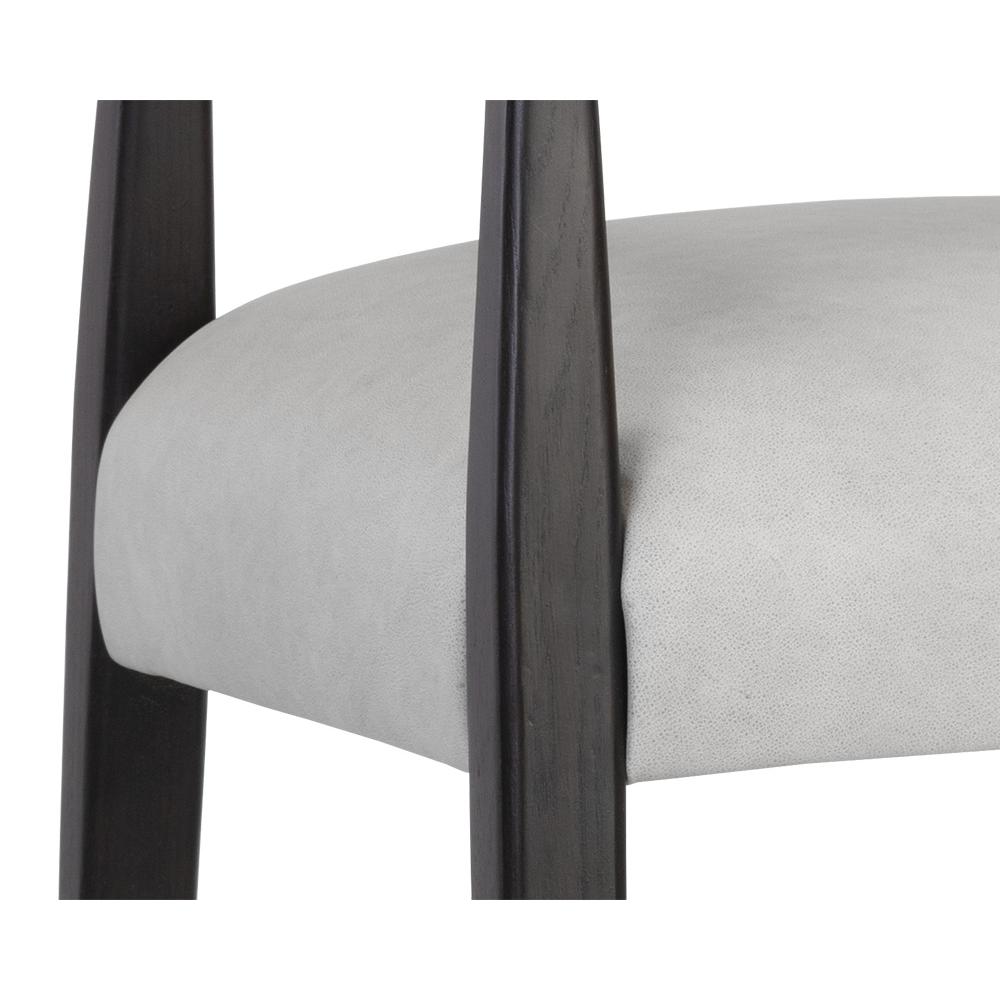Design an inviting dining space with the mid-century inspired Keagan barstool. The exposed dark brown oak wood frame offers an airy element while paired with saloon light grey genuine leather. Handle with Care: This design has been crafted with 100% genuine leather. Leather is a natural material; as such, colour variations, markings, wrinkles, grooves and light scratches are acceptable and appreciated characteristics. No two pieces are alike.