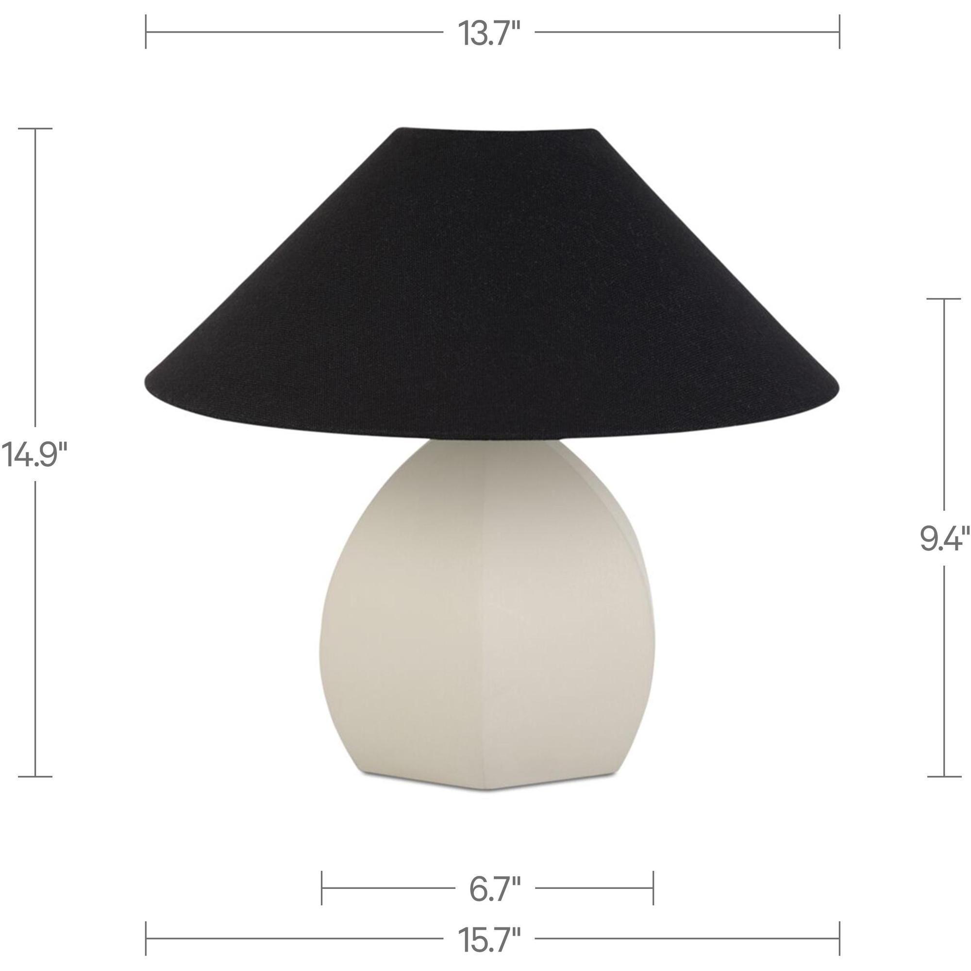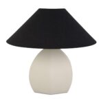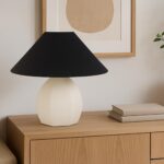 - Angled Black Shade: In stark contrast to the warm beige base, an angled black shade adds a bold, graphic element. Made from cotton, it softens the light with its texture, adding a subtle tactile element.