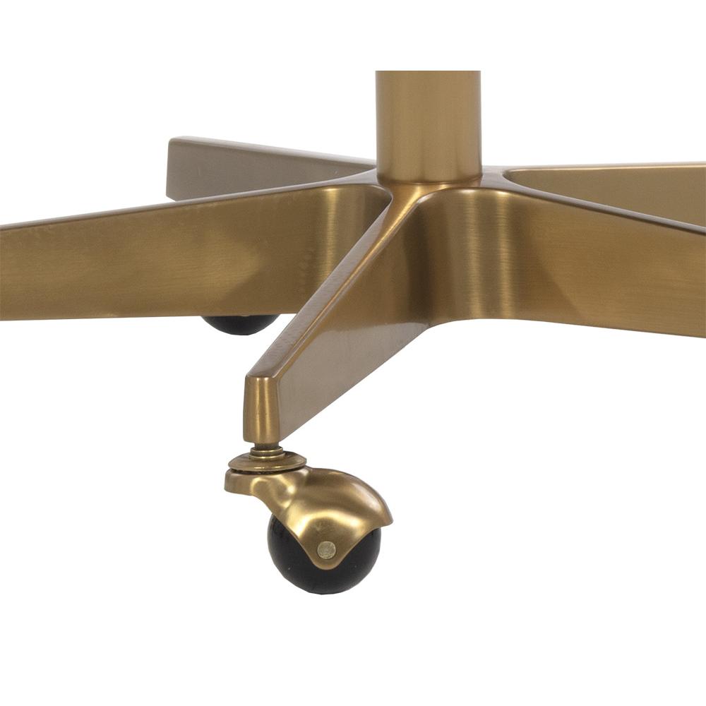 With a modern and minimalist design, this office chair is a marvelous addition to any workspace. Stocked in belfast oatmeal and navy fabrics with an adjustable seat. Completed with a gold steel base with added castors for mobility.