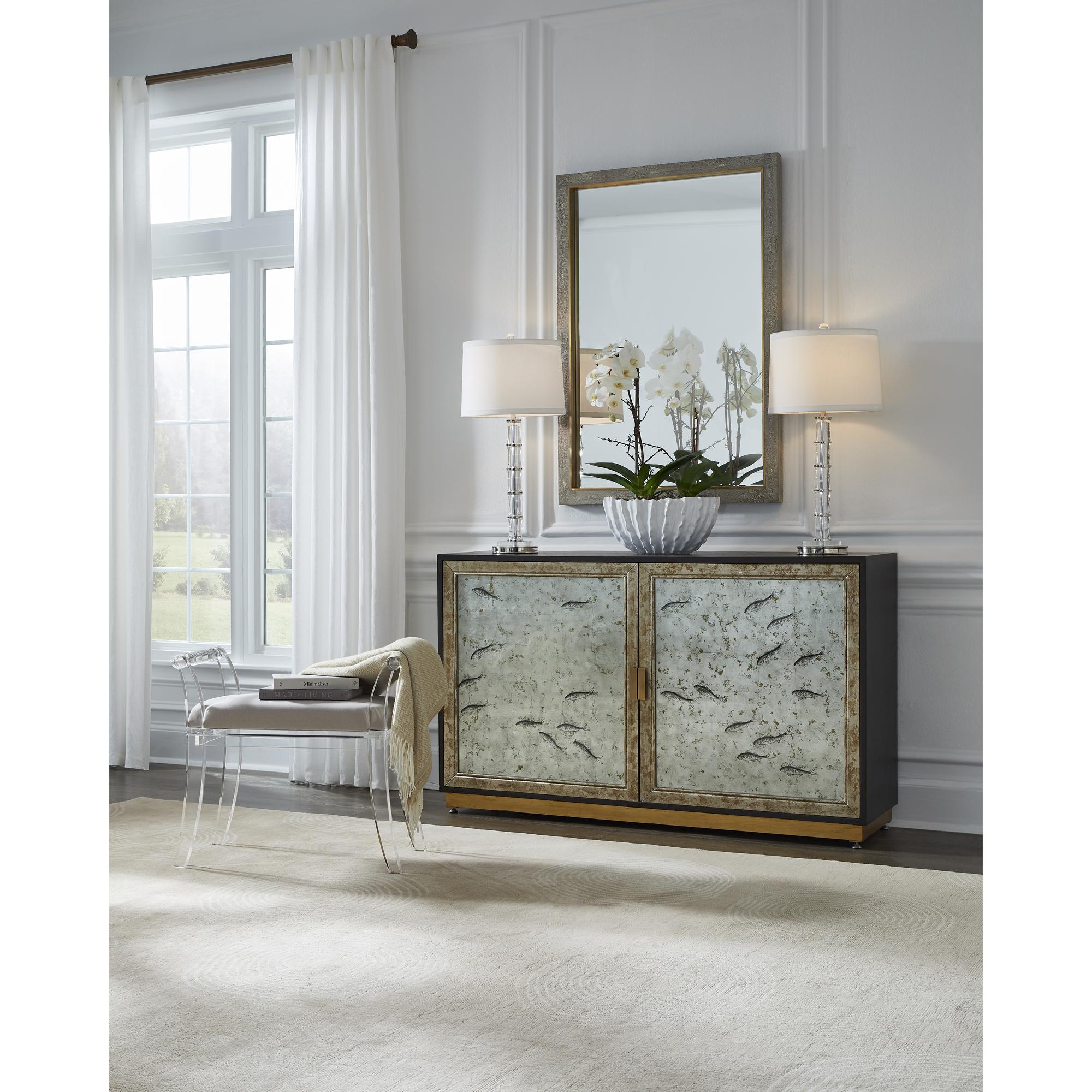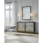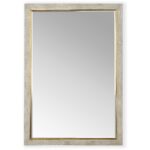 Shark gray shagreen on wood with plain mirror and with polished brass finished iron trim