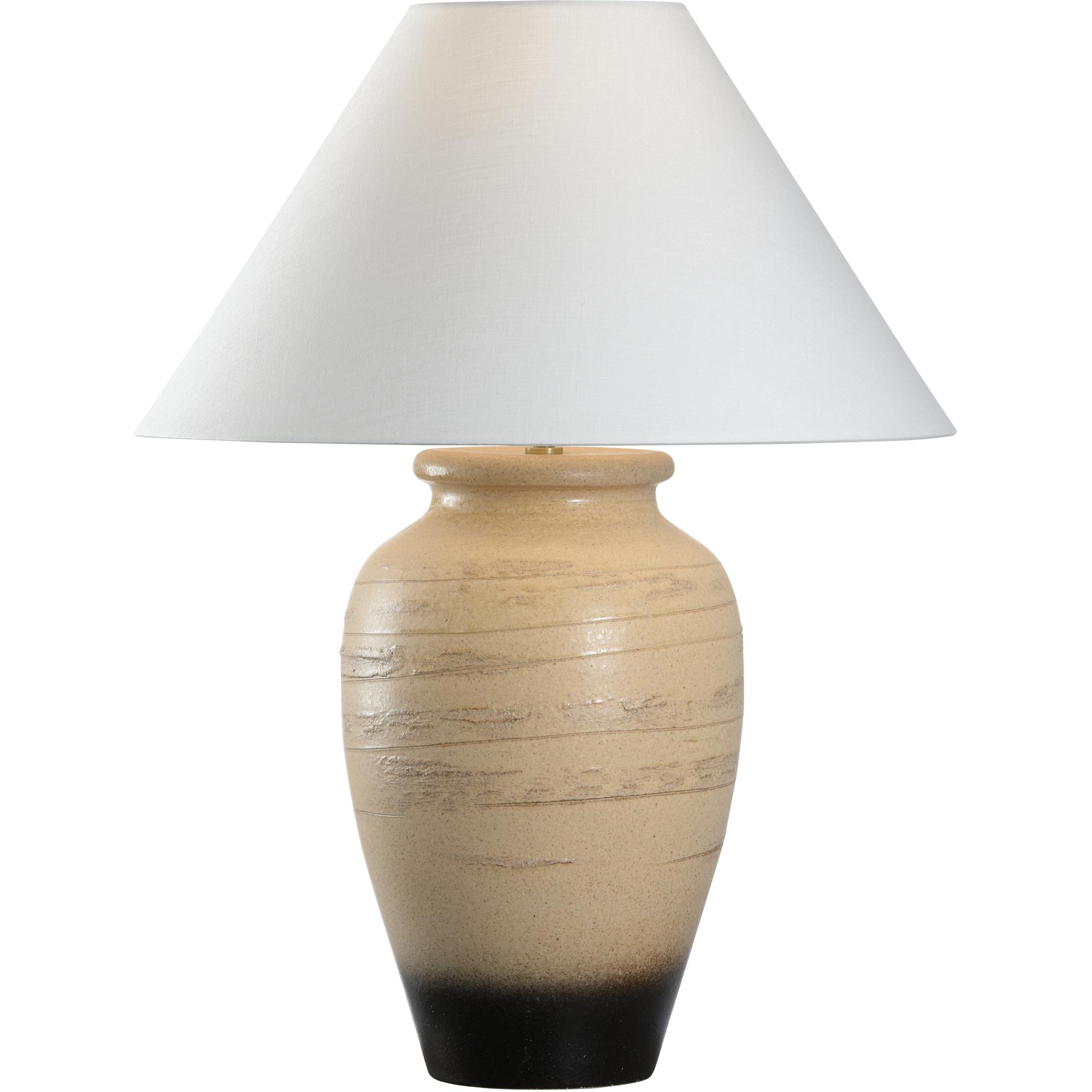 The Kento Table Lamp, part of the Shiga collection, is a beautifully crafted piece that draws inspiration from the natural elements of Japan. Hand-turned using sandy clay sourced from the bed of Lake Biwa, this lamp showcases the unique textures and tones of its native material. The subtle ombré effect transitions from light, earthy beige at the top to a deep, dark hue at the base, creating a harmonious gradient.