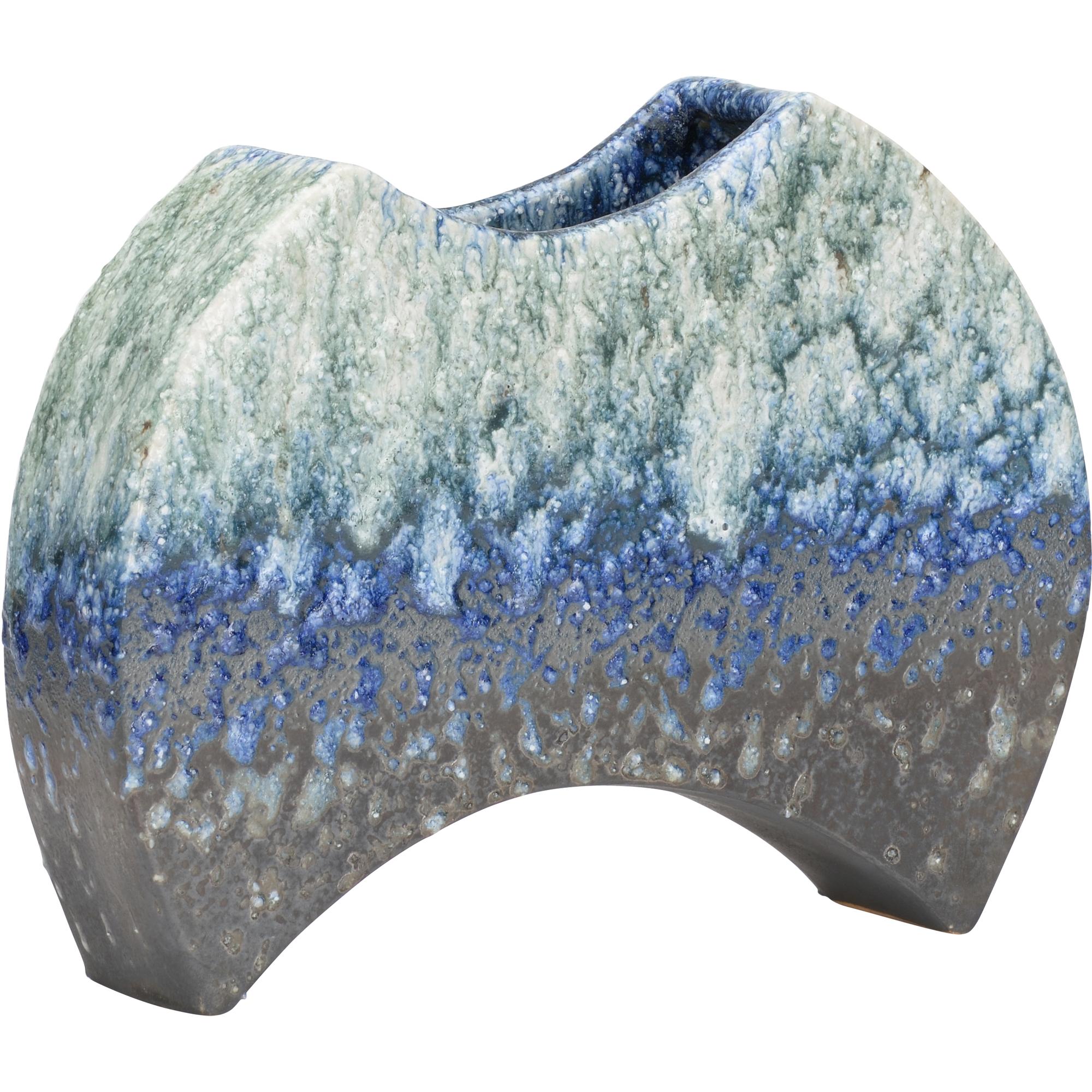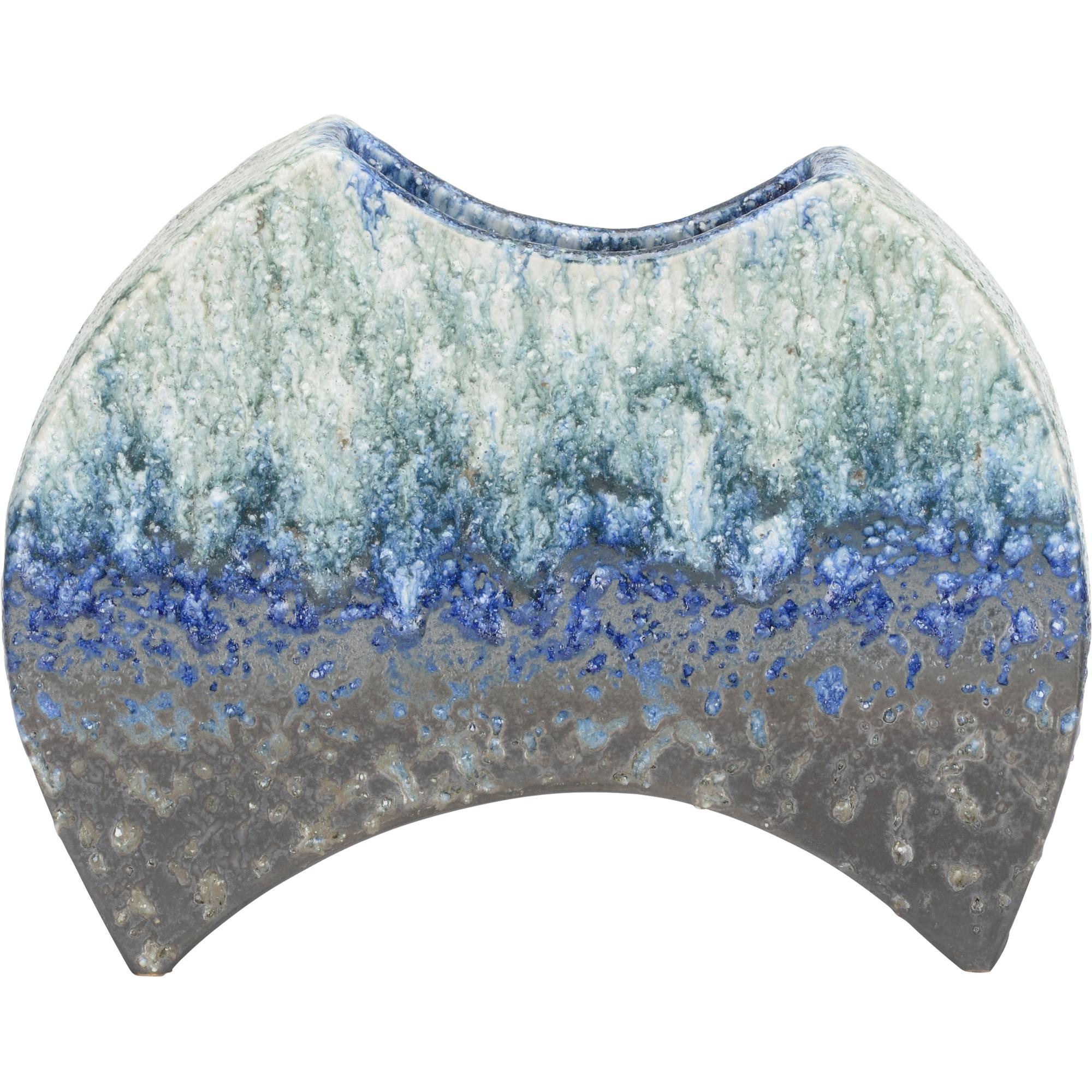 The Kerama Vase, part of the Shiga collection, boasts a harmonious blend of artistry and texture. Handcrafted in Japan, this striking piece combines a rough ceramic surface with a smooth, flowing glaze in cool indigo tones. The vase’s unique curved form makes it a standout accent, perfect for adding sculptural interest to your home. The natural texture and smooth glaze create a dynamic contrast. Whether paired with the Naha vase or used as a standalone piece, the Kerama Vase brings a touch of natural elegance and modern design to any space.