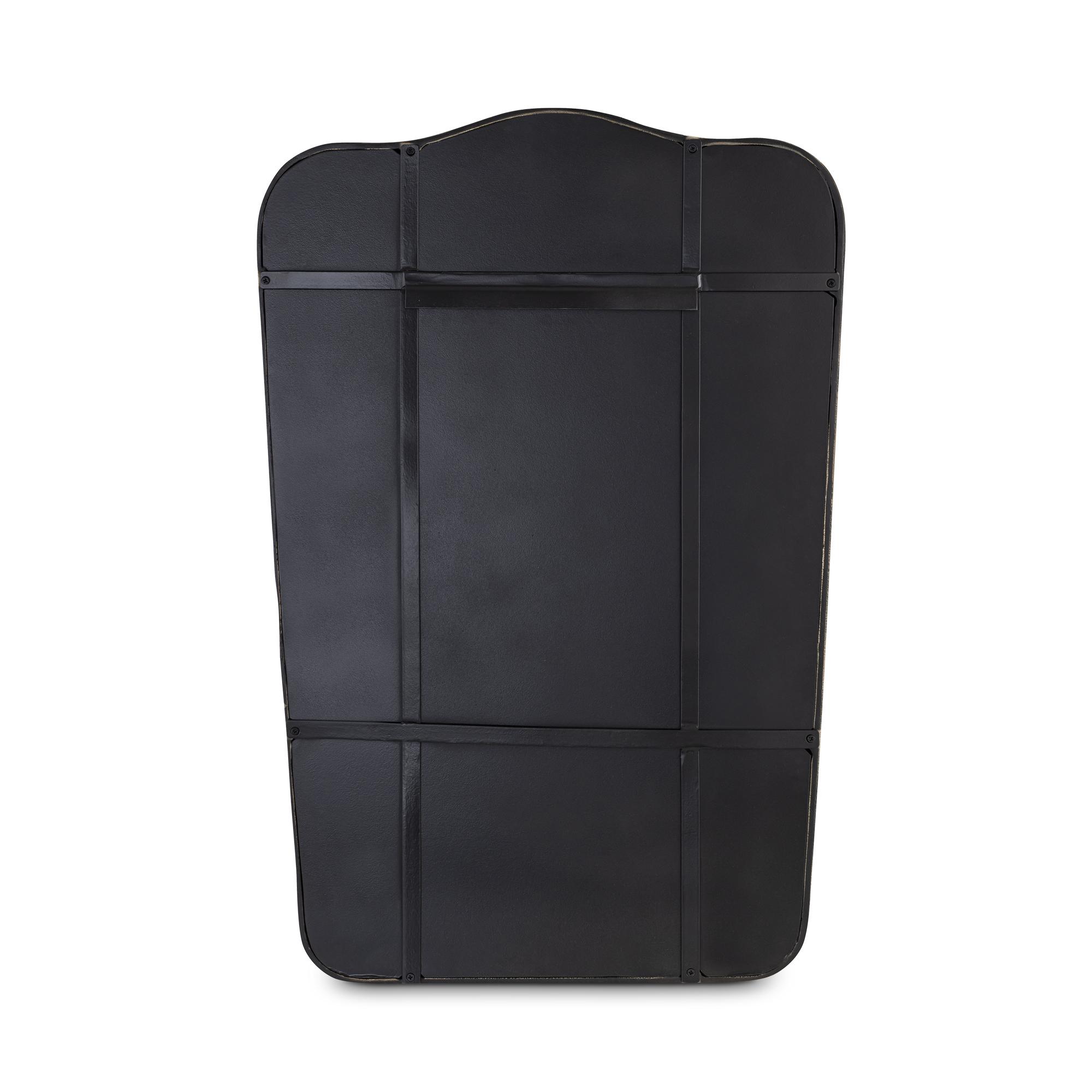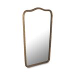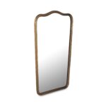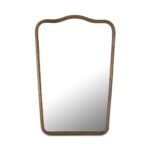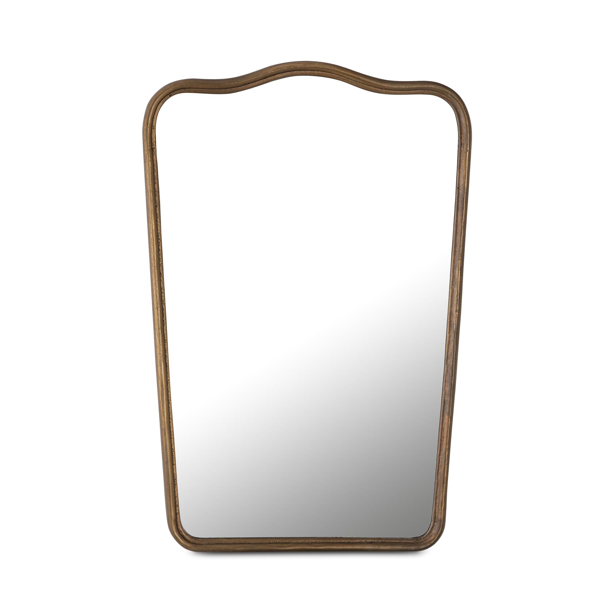 The Keyes mirror, a contemporary homage to Art Deco glamour, marries vintage charm with modern sensibility. Cast aluminum in an aged brass finish creates a substantial presence, while soft scallops add gentle harmony. Delicate pinholes, remnants of the meticulous casting process, whisper tales of artisanal craftsmanship.