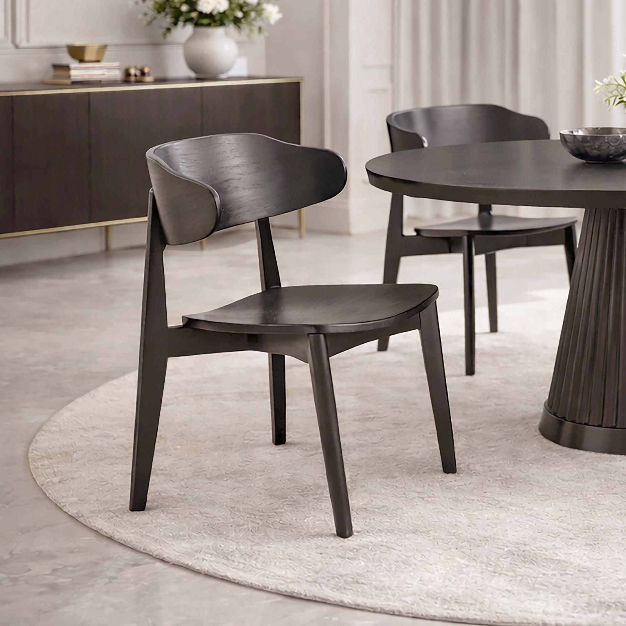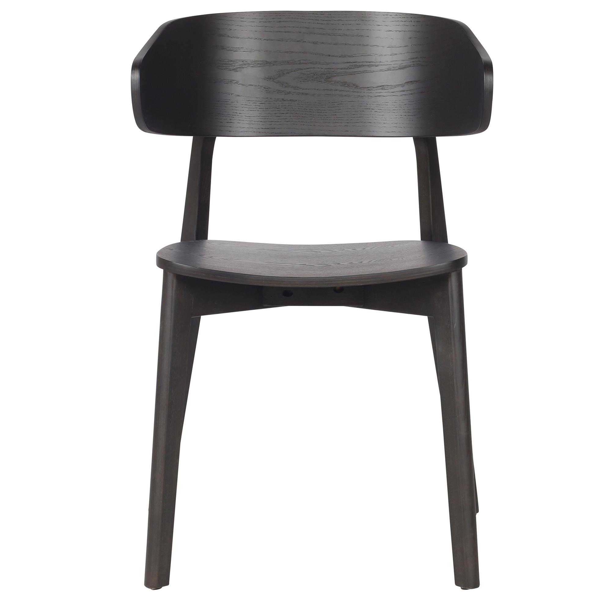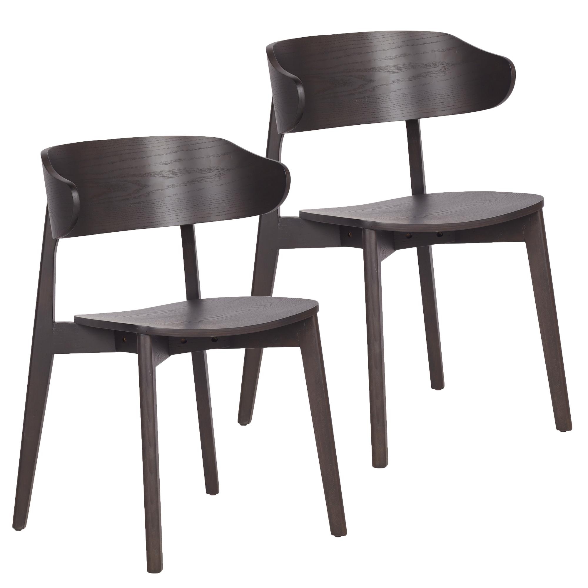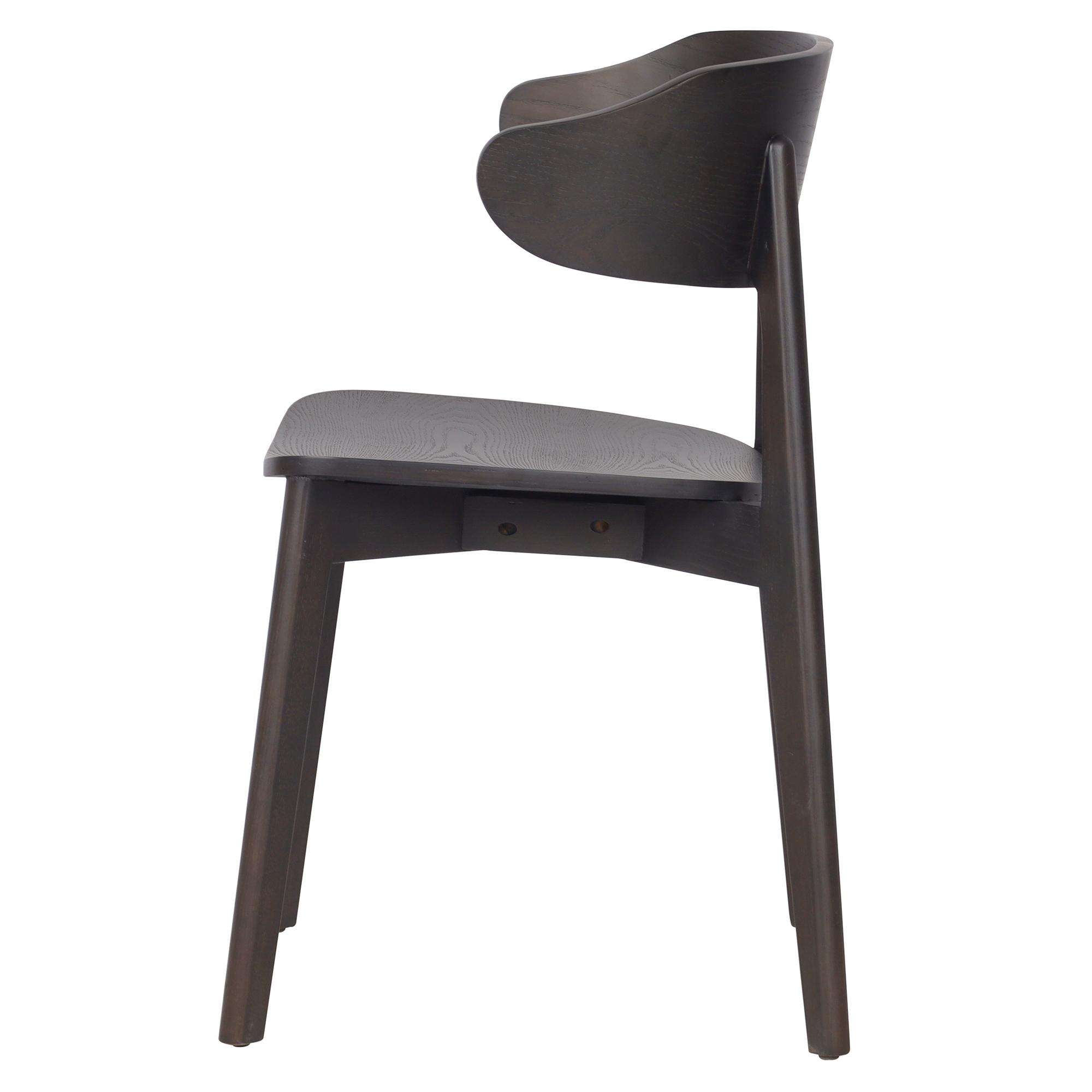 Sturdy solid wood chairs with mid-century modern styling. Rich finishing on the ash veneer is an easy match for various décor styles. Comfortable curved back creates a trendy look and provides support. Perfect for casual dining spaces. These commercial-grade chairs are suitable for residential or commercial use.