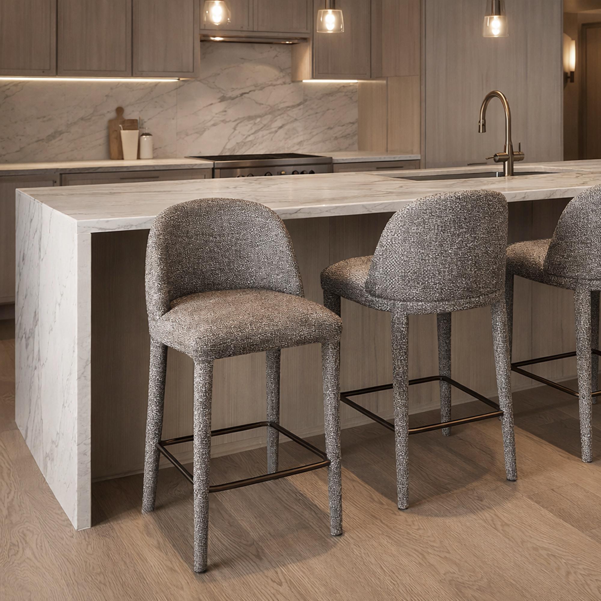 The contoured back on this beauty of a counter stool will provide hours of seated support while the clean lines will work well in any contemporary or transitional space. Soft, textured fabric upholstery covers not only the full seat and back, but also the metal legs, creating a monotone look that will make a big style statement. Great for formal entertaining spaces or casual kitchen counters and everyday use.