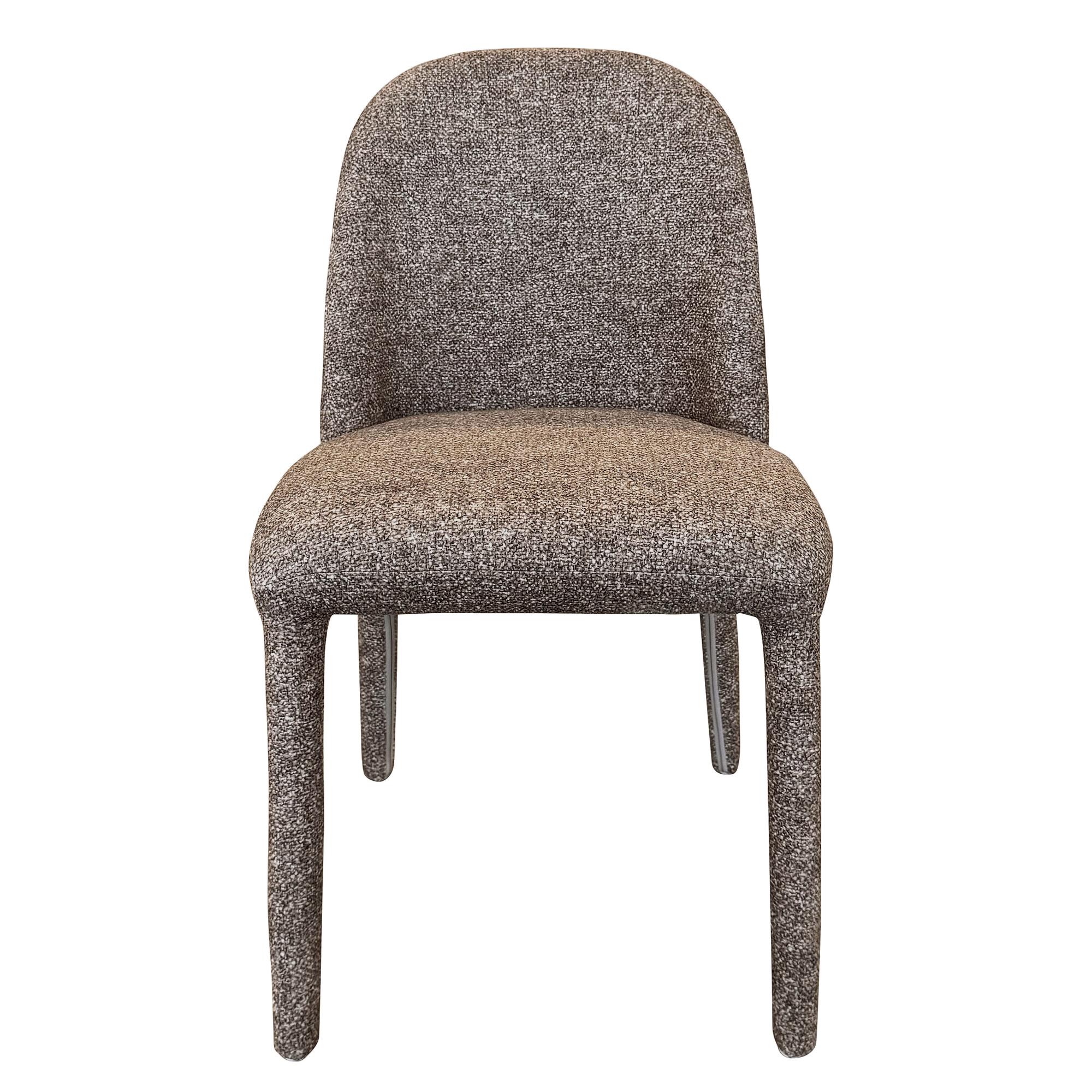 The contoured back on this beauty of a dining chair will provide hours of seated support while the clean lines will work well in any contemporary or transitional space. Soft, textured fabric upholstery covers not only the full seat and back, but also the metal legs, creating a monotone look that will make a big style statement. An easy match to various styles and finish of dining tables, or great to use as an accent chair in any room.