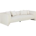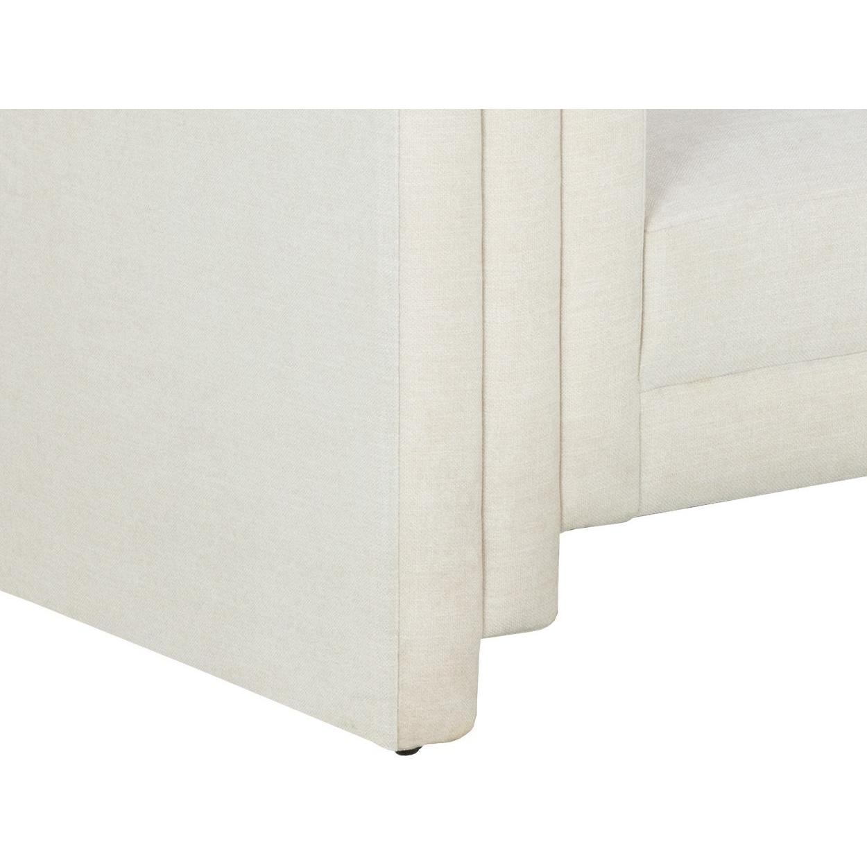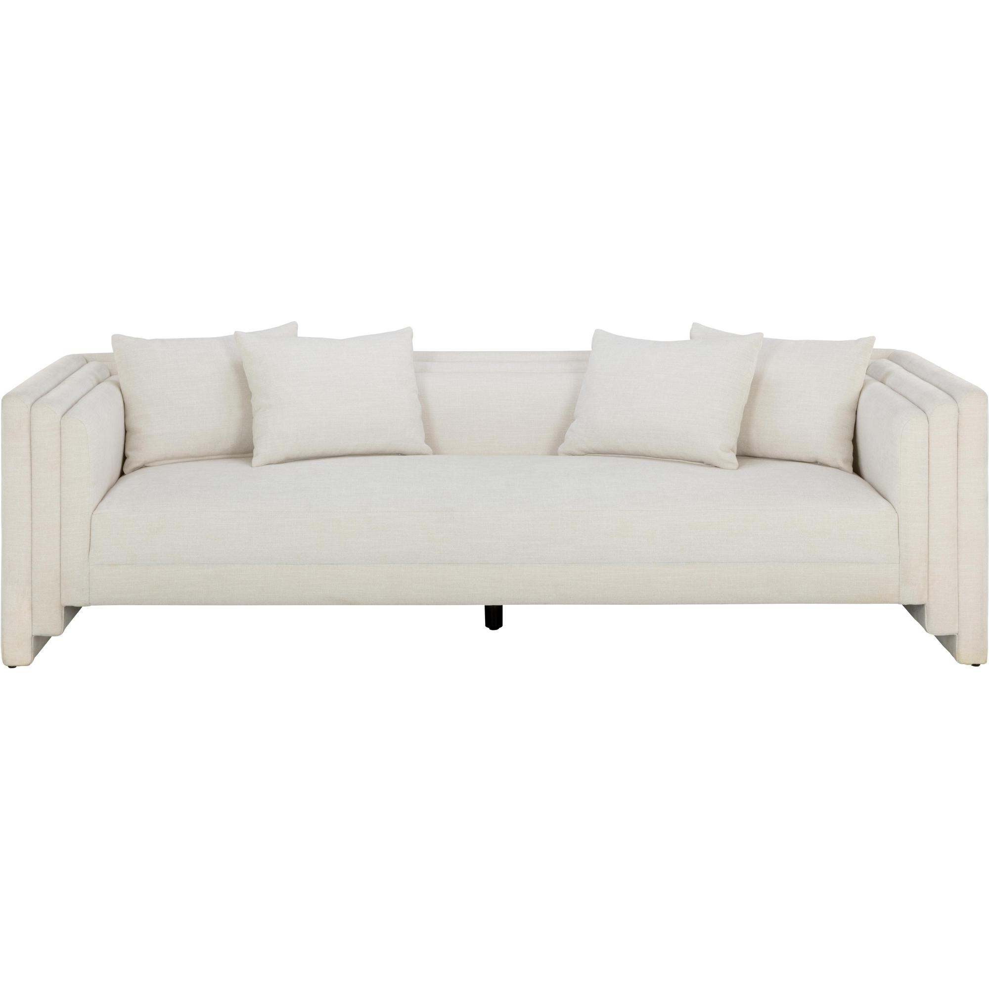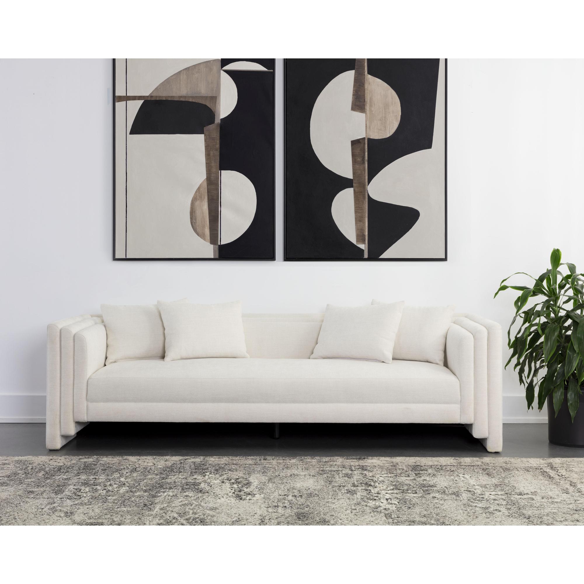 Artfully designed with soft geometric lines, the Kira Sofa evokes a distinctly modern style. Fully upholstered in our heather tweet ivory performance fabric, this sofa is velvety soft. Performance fabric is moisture repellent, durable and easy to clean.
