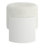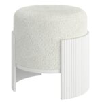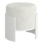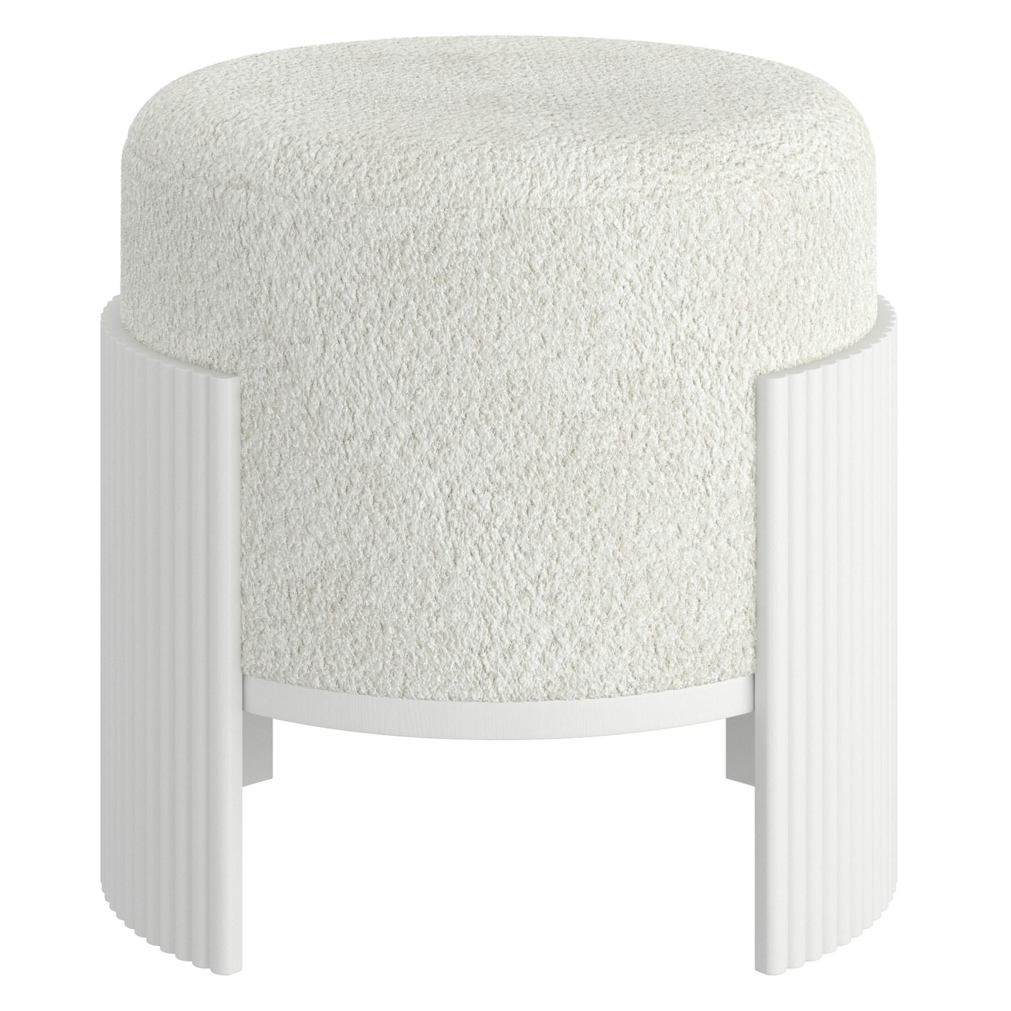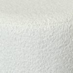 Add a touch of refined texture to your living space with this round ottoman, a perfect blend of comfort and style. Upholstered in luxurious boucle fabric, the plush top invites you to sit or rest your feet in ultimate coziness. The ottoman’s standout feature is its reeded wood silhouette that wraps around the outside, offering a sophisticated contrast to the soft fabric and adding a touch of modern craftsmanship. Compact yet eye-catching, this ottoman is ideal for use as a footrest, extra seating, or a stylish accent piece that enhances any room with its blend of warmth and texture.