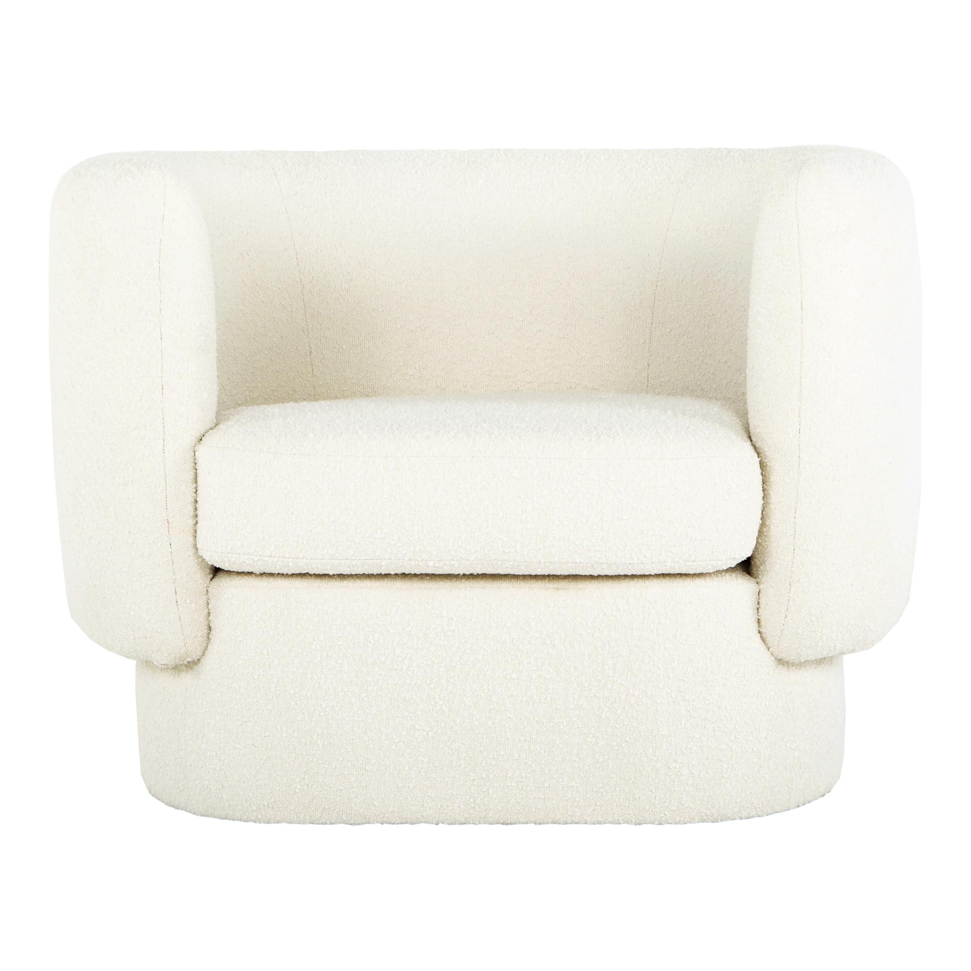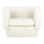 Adorned in a sophisticated cream-white hue, the Koba chair is a showcase of graceful contours and curved lines. Beneath its plush exterior, the chair is crafted with meticulous attention to detail, featuring a luxurious foam filling, resilient no-zag springs, and robust solid FSC-certified wood construction for an experience that is both sumptuously soft and enduringly supportive.