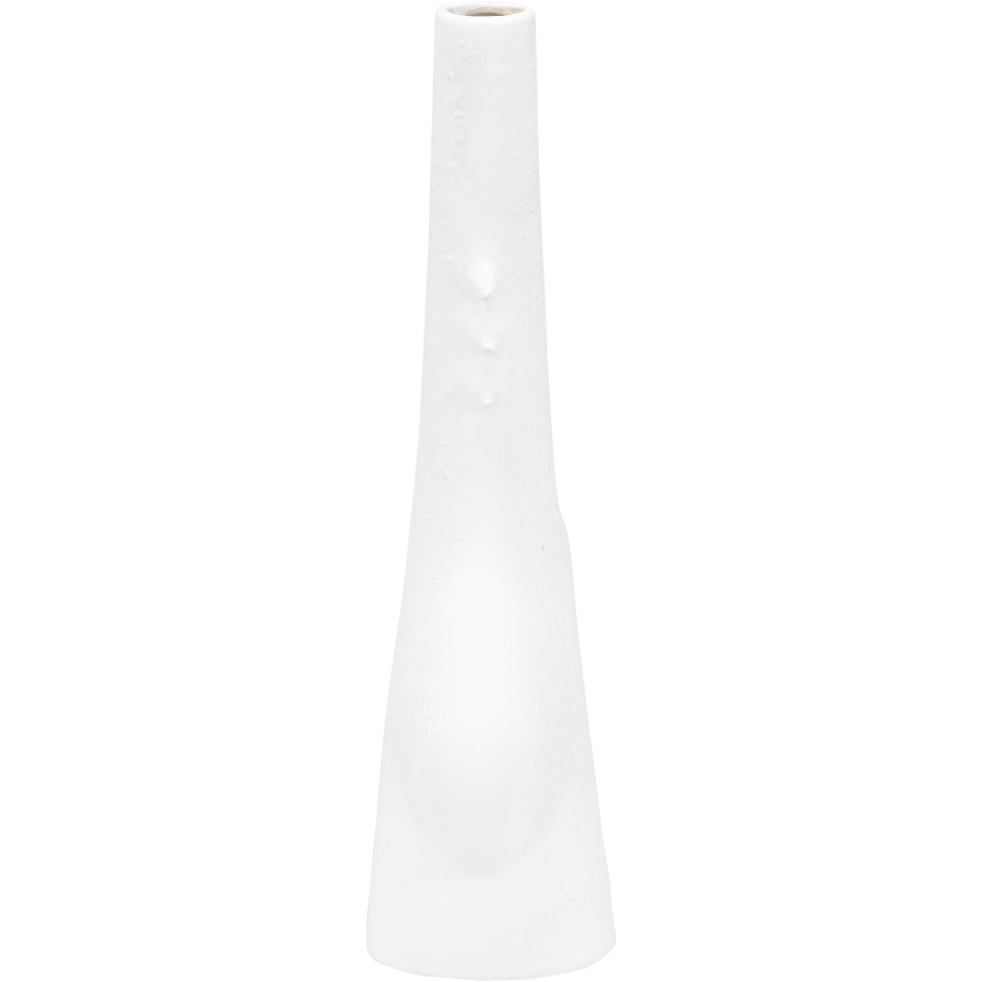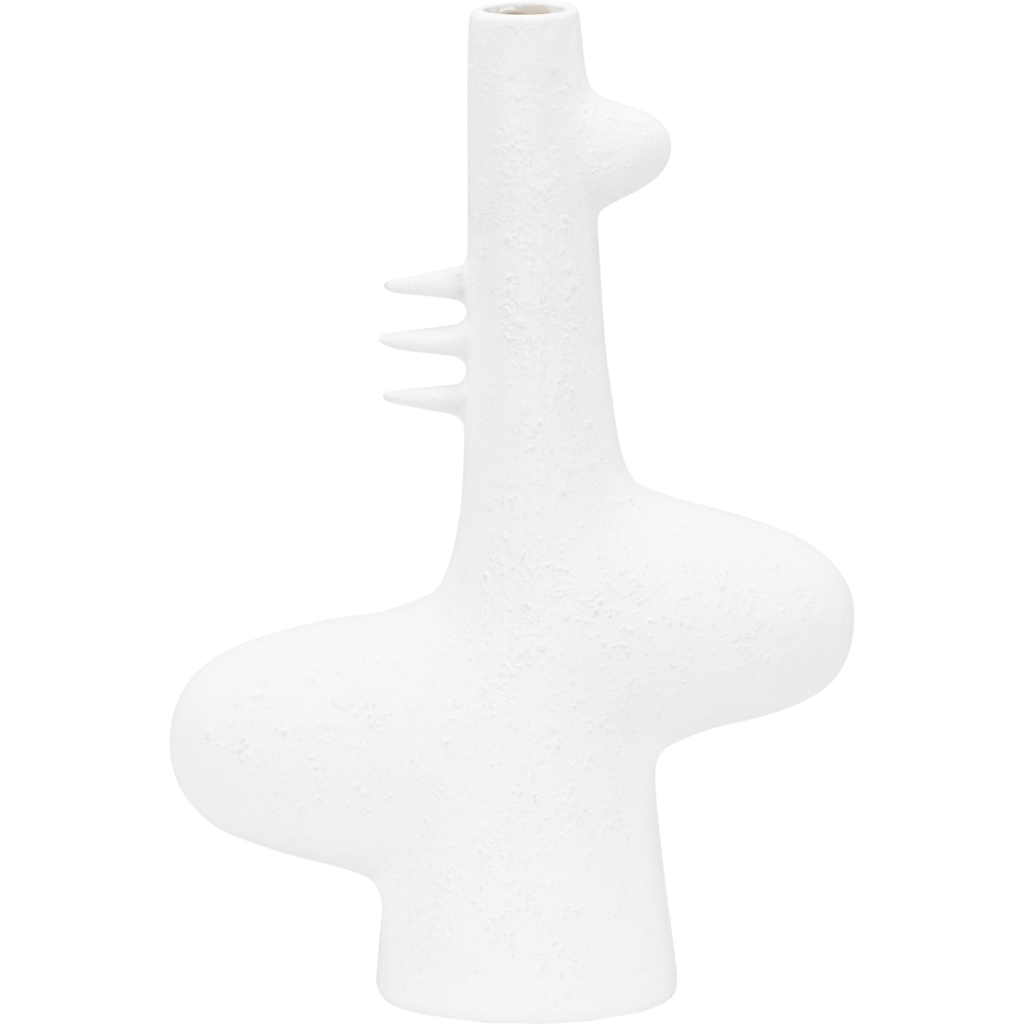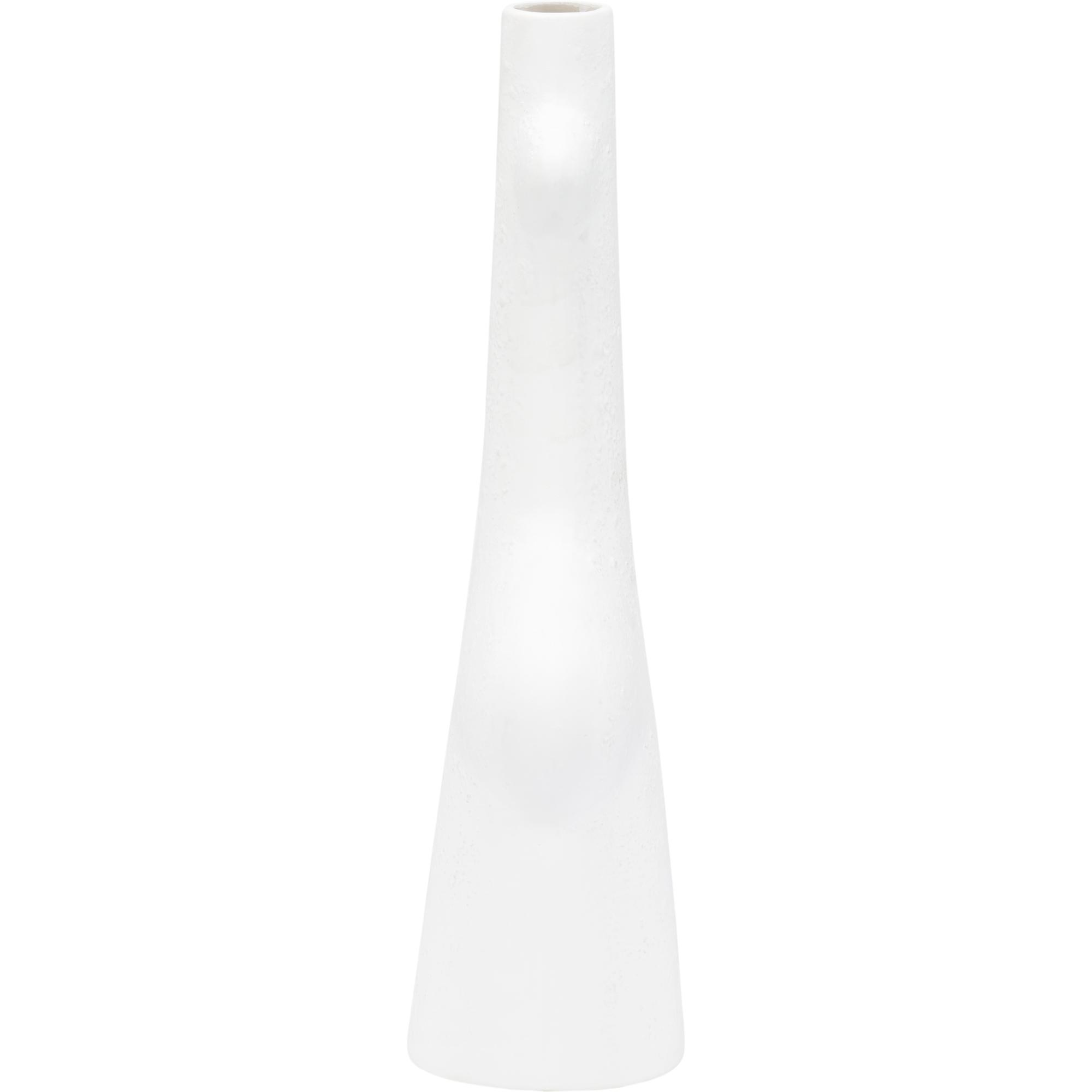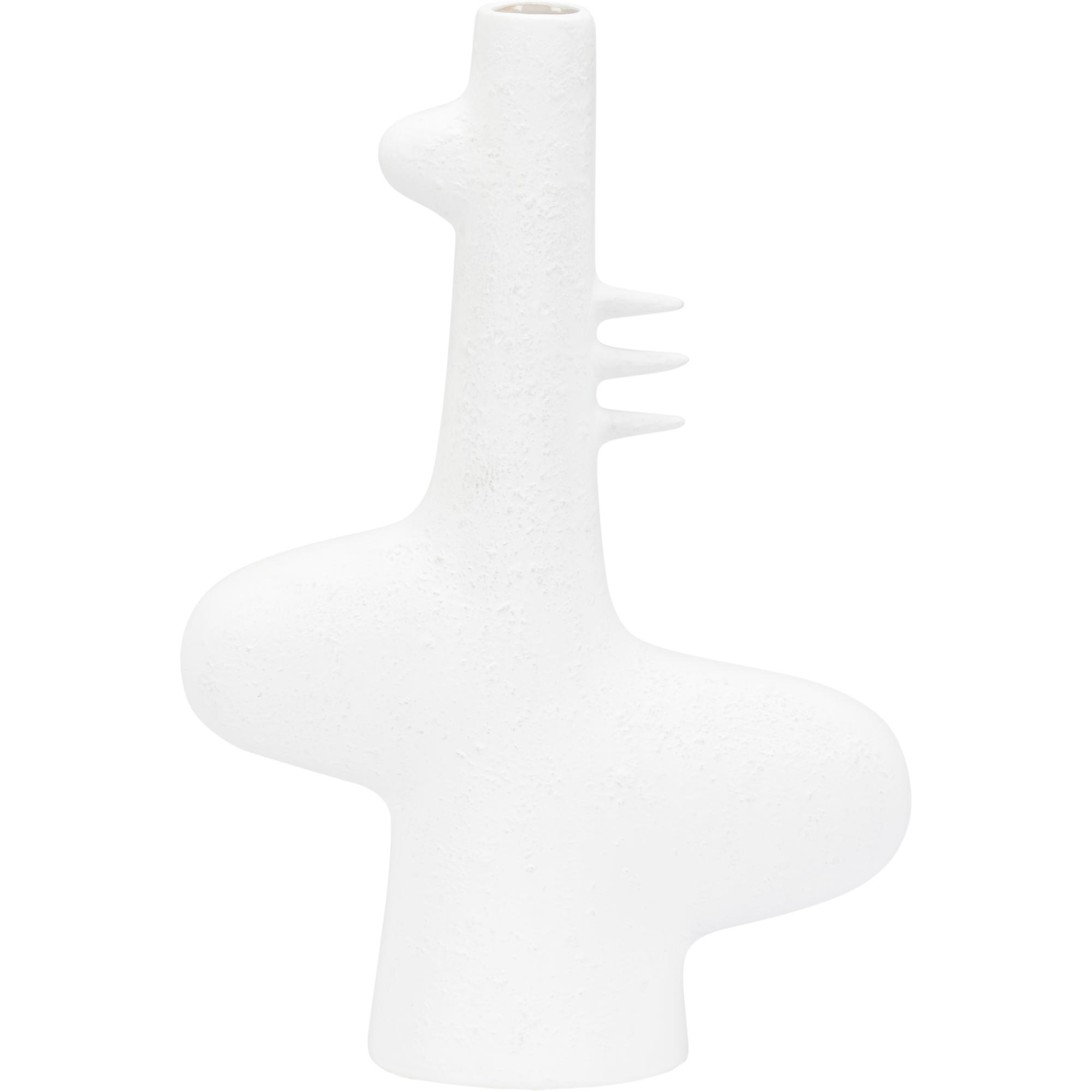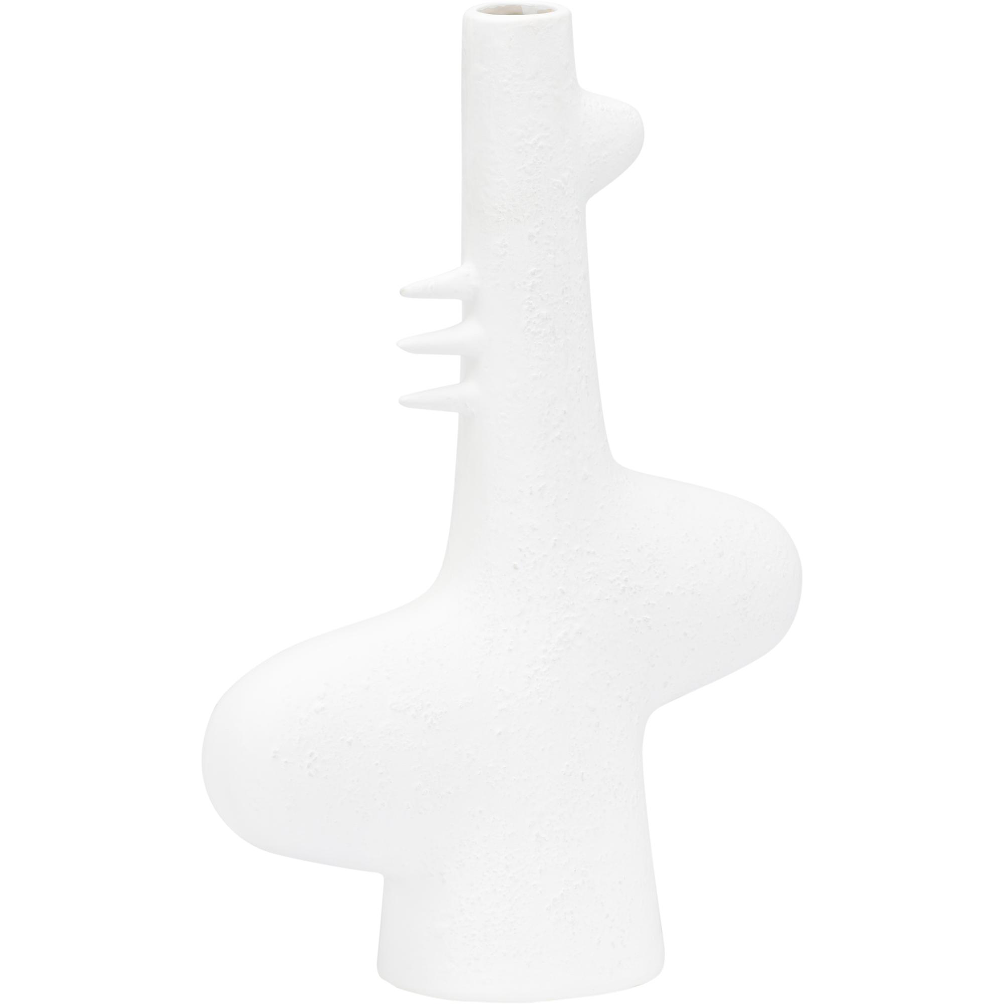 Reminiscent of the white sandy beaches in Kona, HI, this vase is ideal for tabletops in any modern home or office. The white glazed ceramic has a matte, sandy texture that helps to highlight the whimsical silhouette. May be grouped with other Kona styles to create a fun yet cohesive look for bookshelves and other flat surfaces.