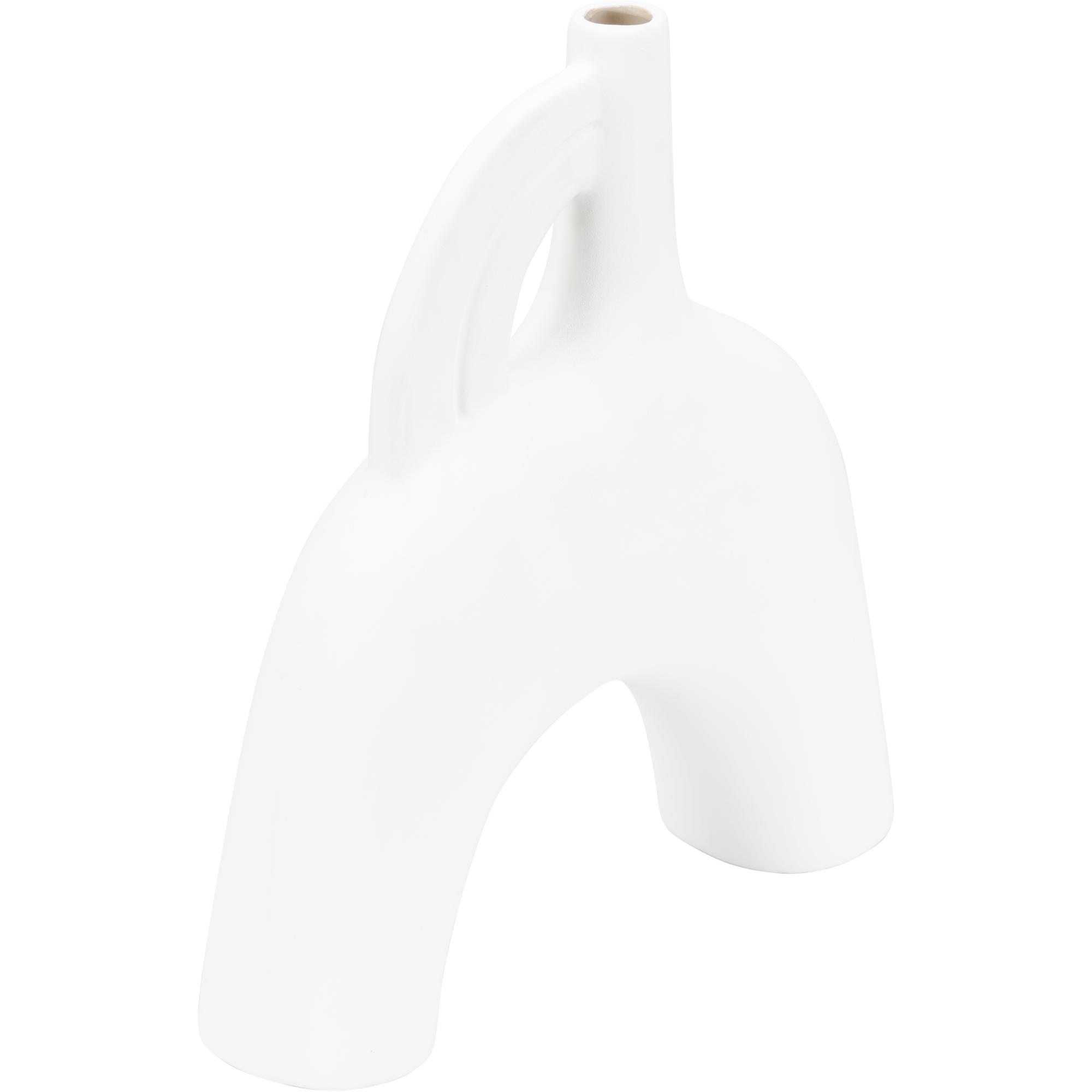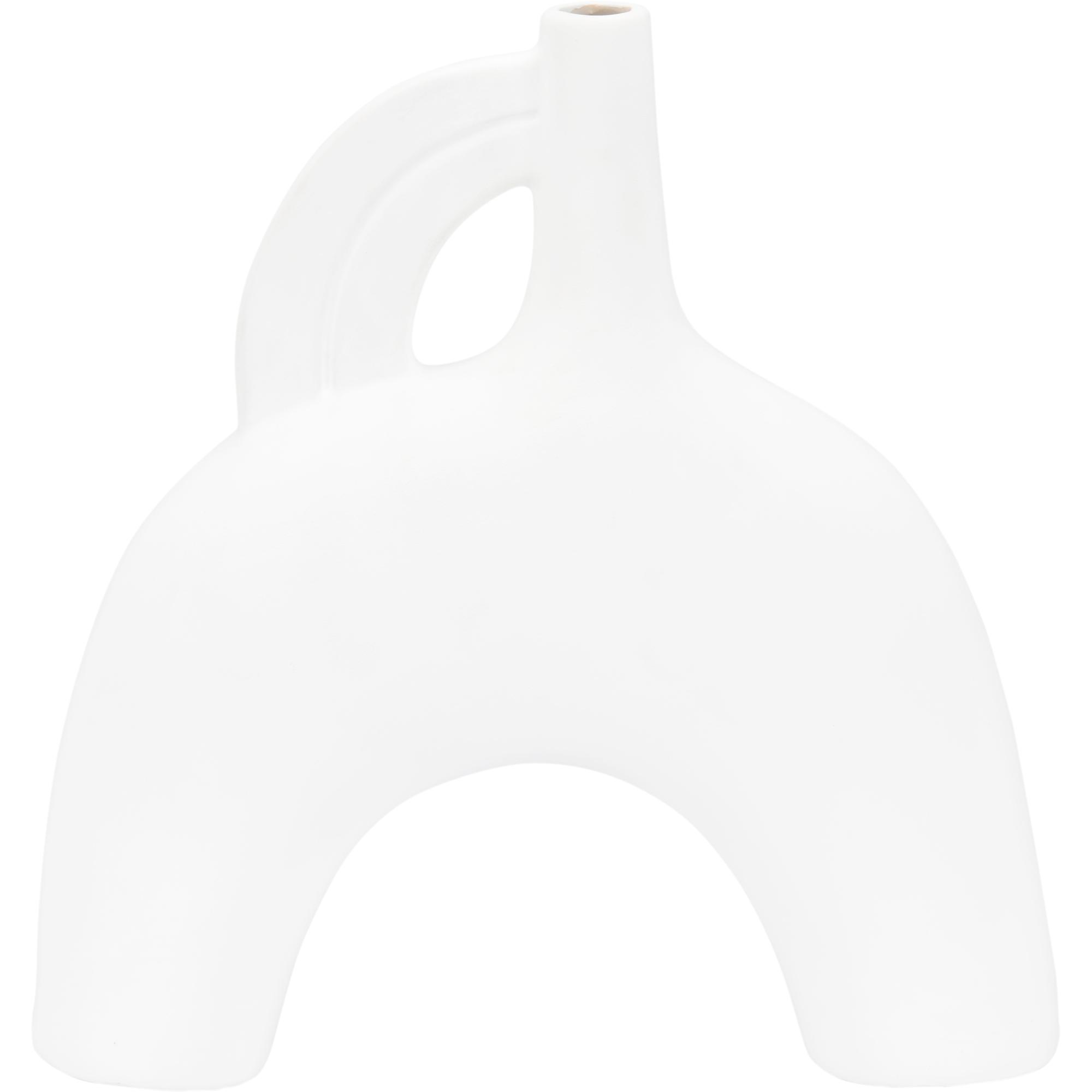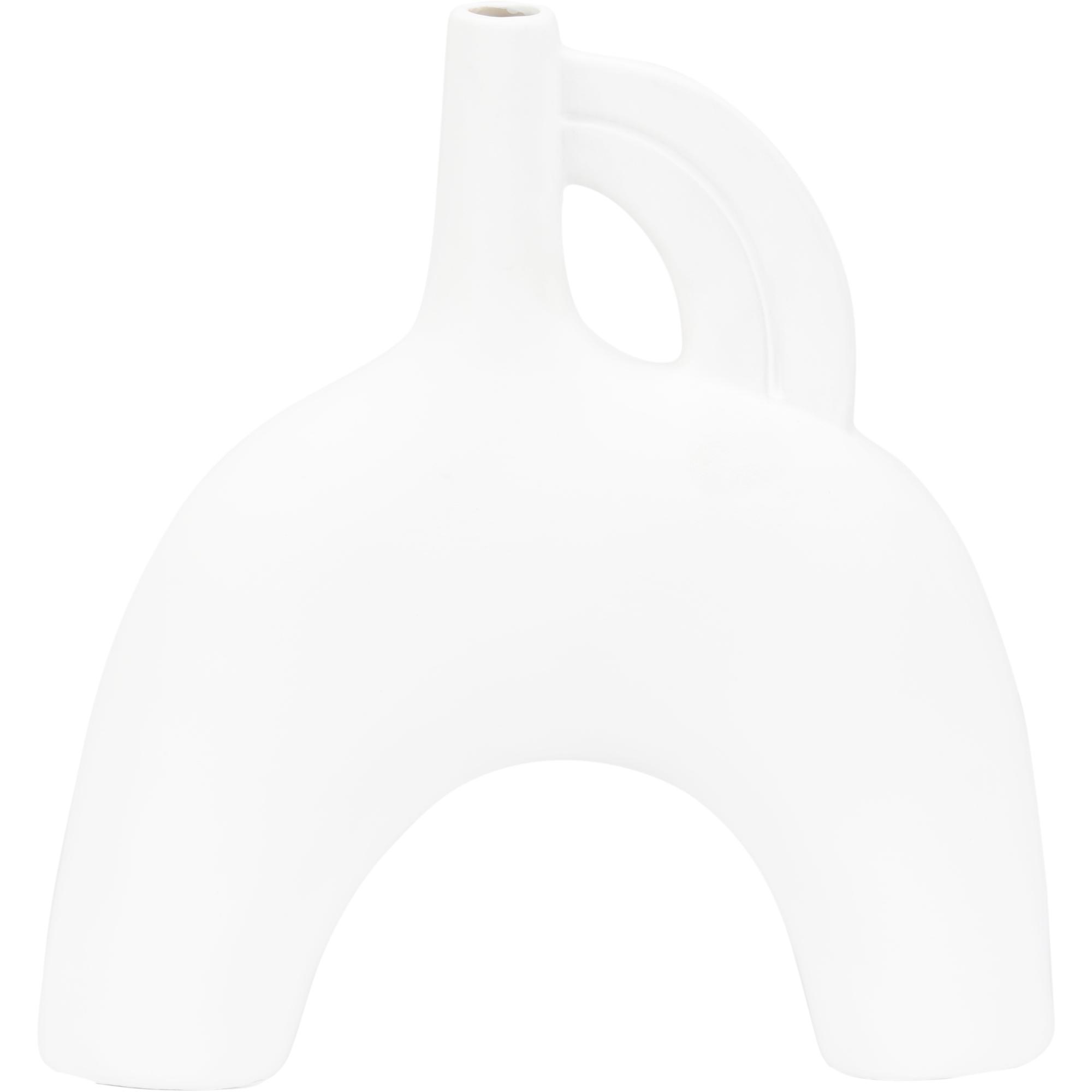 Reminiscent of the white sandy beaches in Kona, HI, this vase is ideal for tabletops in any modern home or office. The white glazed ceramic has a whimsical silhouette. May be grouped with other Kona styles to create a fun yet cohesive look on bookshelves and other flat surfaces.