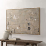 This abstract art painting allows every passerby to create their own narrative from its print details and brush strokes. In the home office or workplace, this canvas art sparks creativity without overpowering the space. The muted palette extends out to the light walnut frame, making placement within an interior an effortless process.