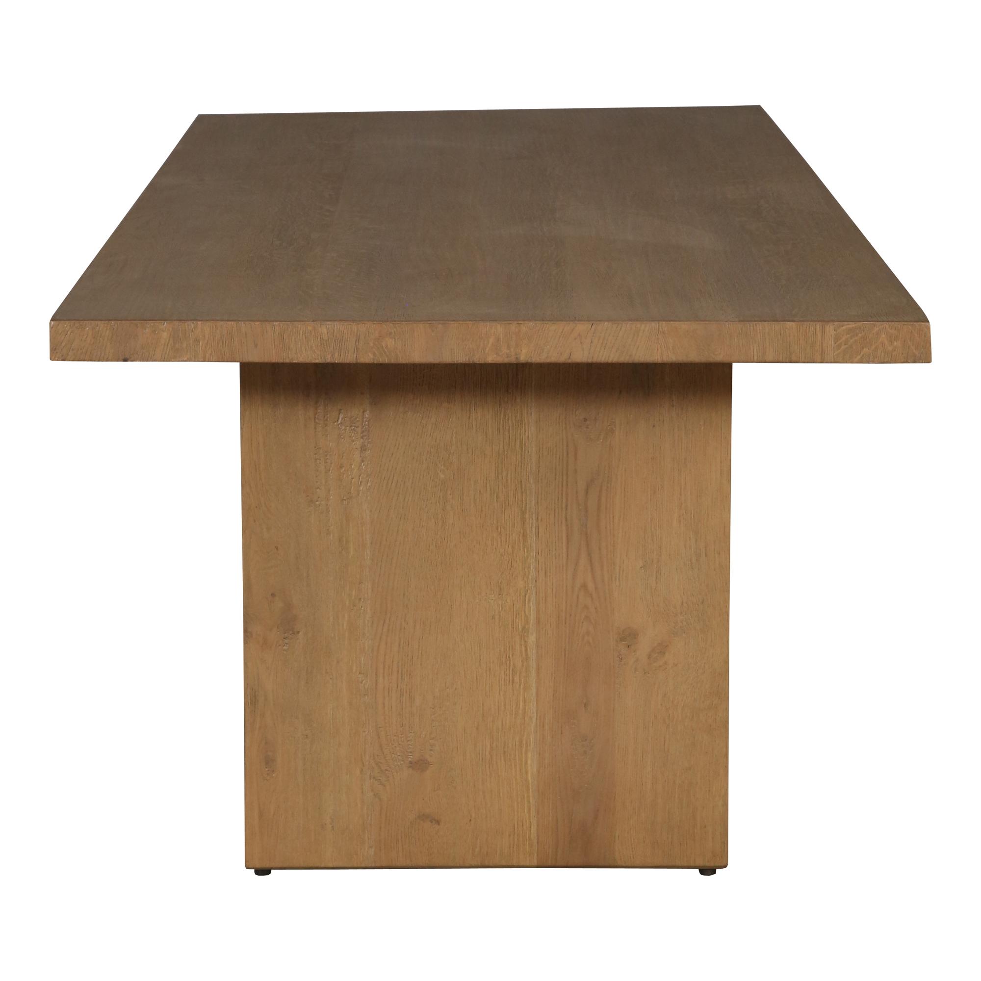 Sometimes, simple is best. With crisp, clearly defined shapes, the Koshi collection brings minimalist organic appeal to your dining area. Crafted from solid oak, this sturdy dining table features two balanced square legs, while a spacious tabletop will supply more than enough room for dinner parties. A subtle sandblasted amber finish is a fitting finishing touch, bringing a cool element to Koshi’s natural woodgrain. Pair this dining table with the Koshi bench for the full organic effect.