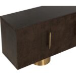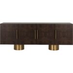 With rich brown hues and gold stainless steel accents, the Kresteven Sideboard imbues any space with an air of understated luxury. The intricate swirling patterns and distinct mottled shading of maple burl veneer emphasize quality craftsmanship and modern design.
