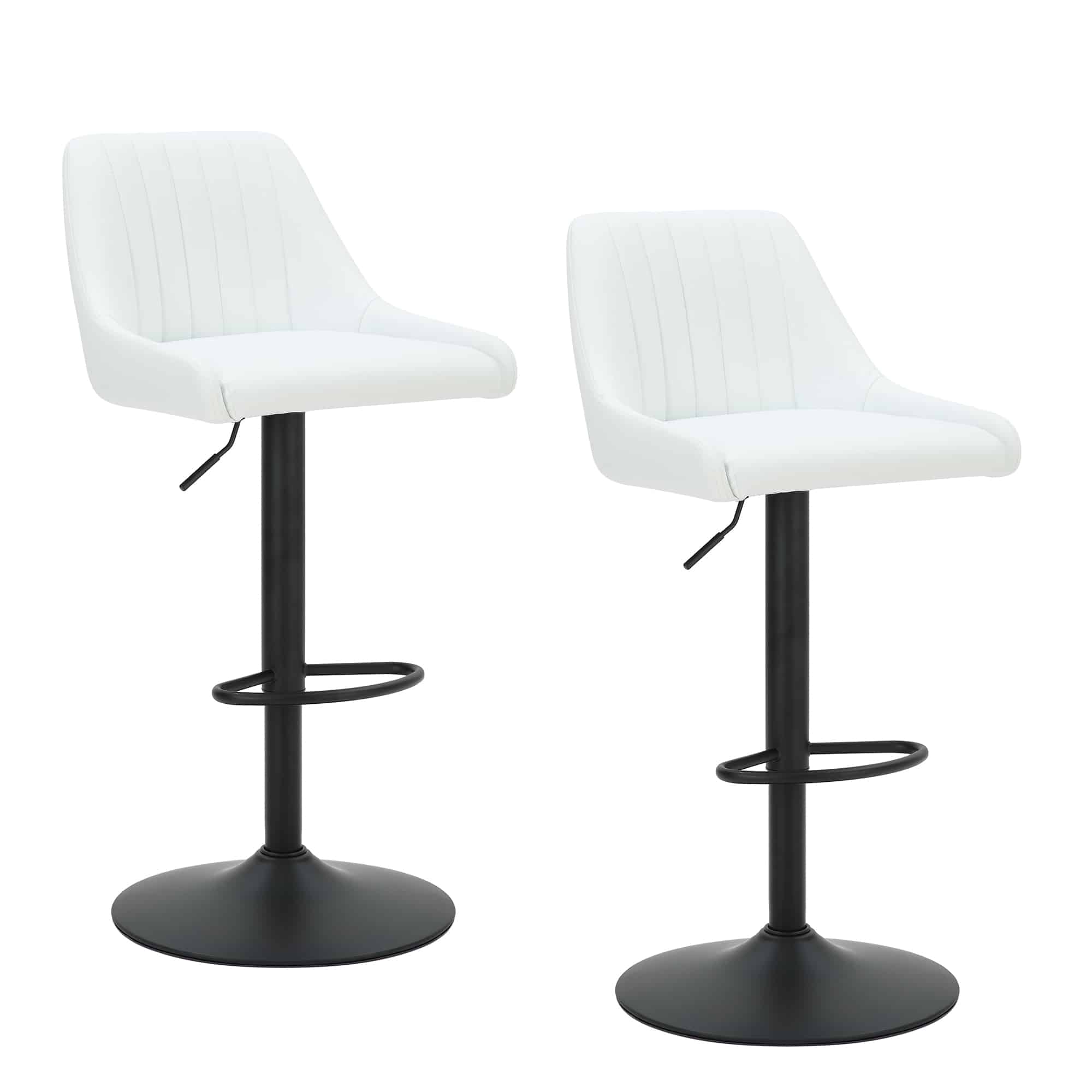 Kron Adjustable Height Air-Lift Swivel Stool, Set of 2, in White Faux Leather