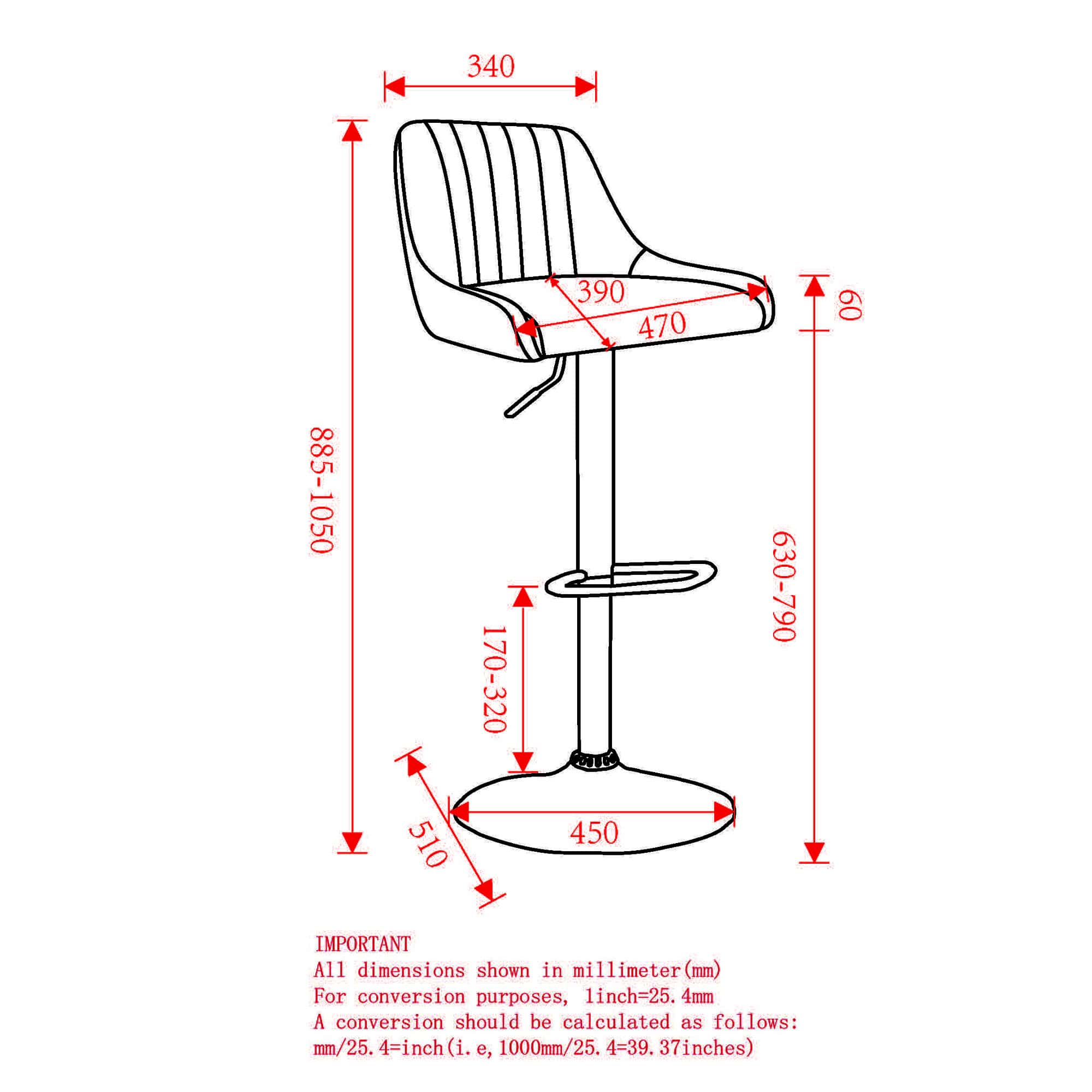 - 360° swivel seat with faux leather upholstery and vertical tufting