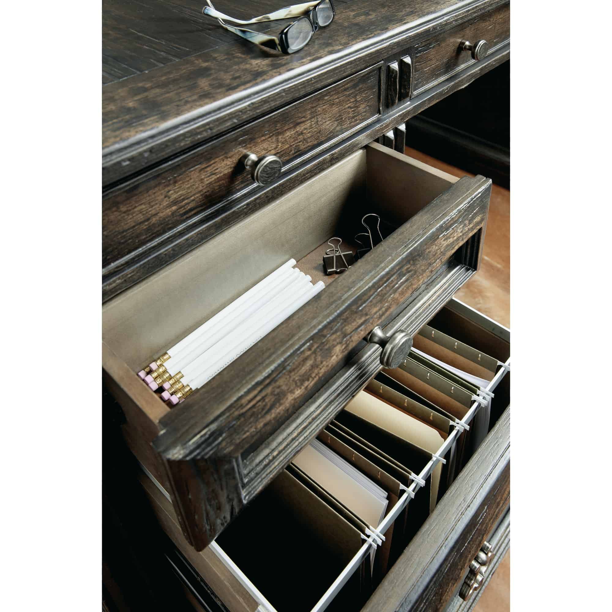 Top drawer on right and left sides both have removable partitions