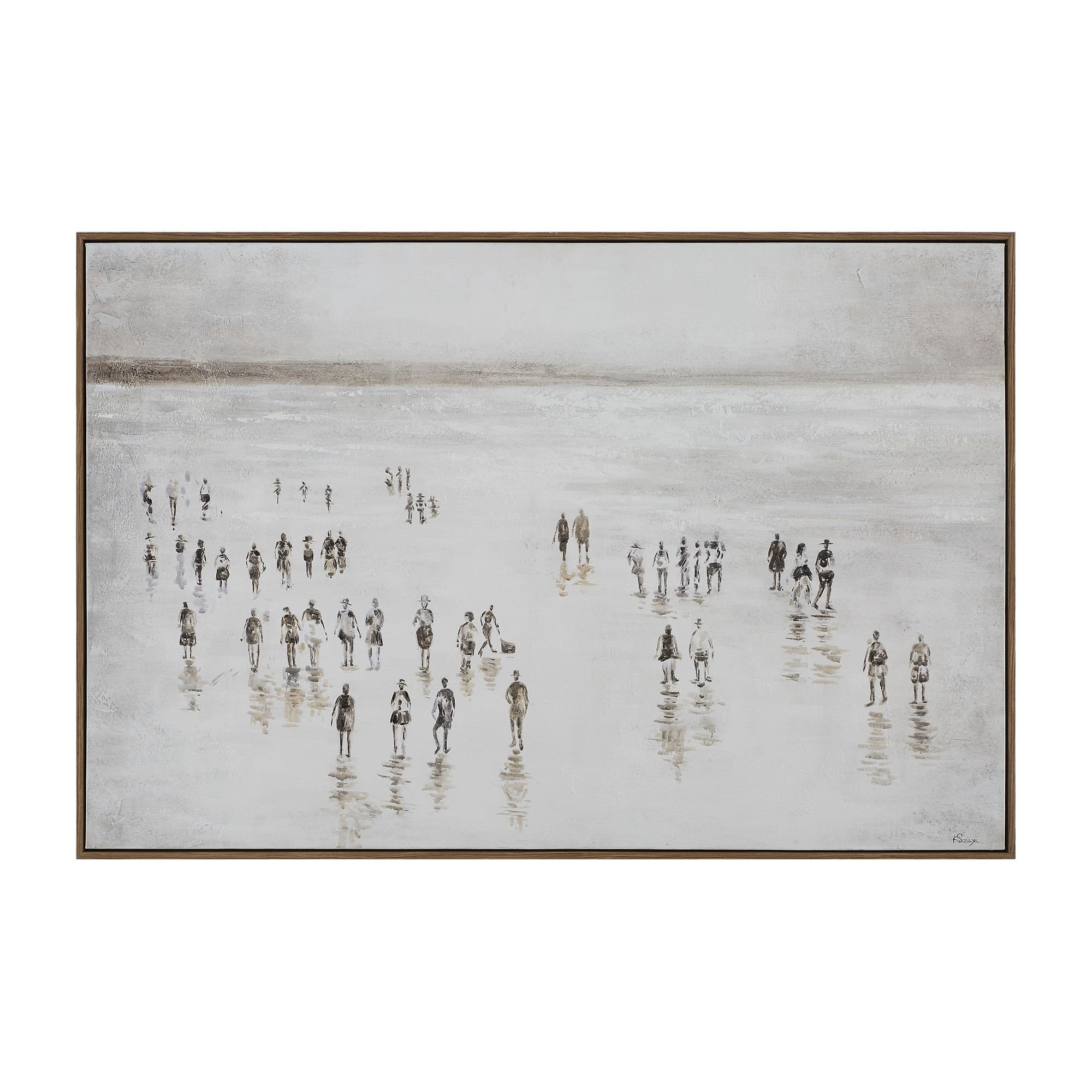 Embrace a vacation vibe in any space with this beachy canvas wall art. Hand-painted with lots of texture in calming shades of beige, it creates a visual sensation anywhere it hangs. Oversized dimensions and a medium walnut frame make this masterpiece ready to display on any large wall.