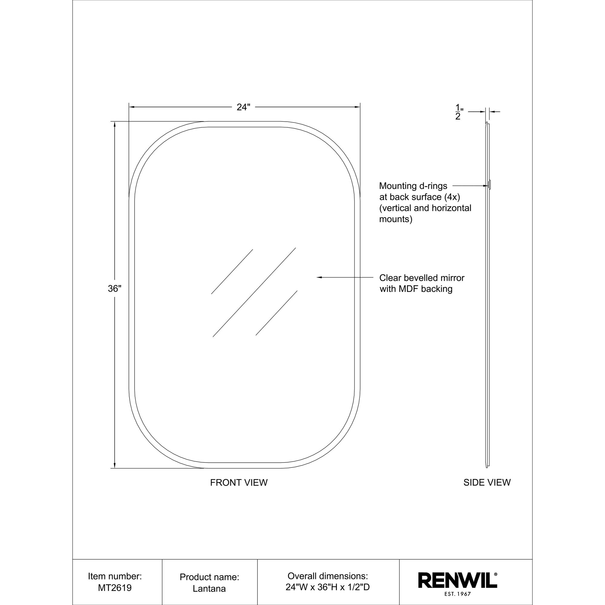 The Lantana 36″ Tall Rectangular Oval Mirror is the perfect addition to any modern home. Its effortless elegance and minimalist design makes it a standout piece that can transform any room. Constructed with high-quality materials, this mirror is durable and built to last. Its low-maintenance finish also makes cleaning a breeze. Equipped with a D-Ring hanging system, installation is quick and easy. This mirror is also designed for versatile display options – perfect for those who like to mix things up.