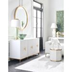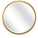 Combine beauty and function with this 44″ round contemporary style mirror. A warm antique gold leaf metal frame supports a beveled mirror reflecting your existing decor. Perfect in your home or office where you need to provide dimension in your space.
