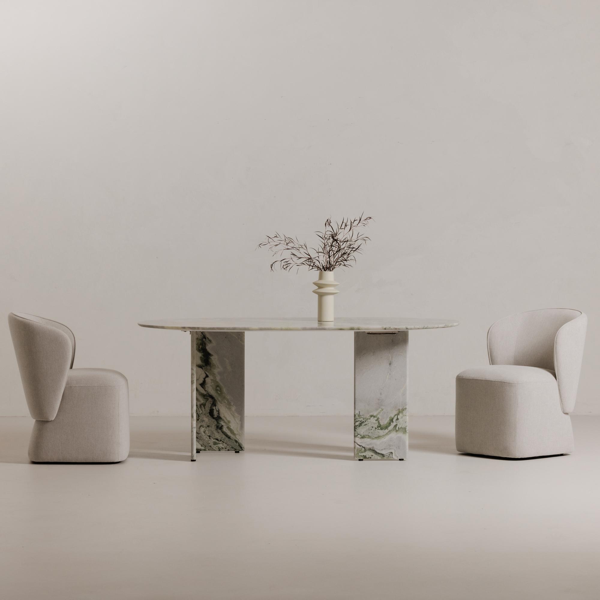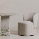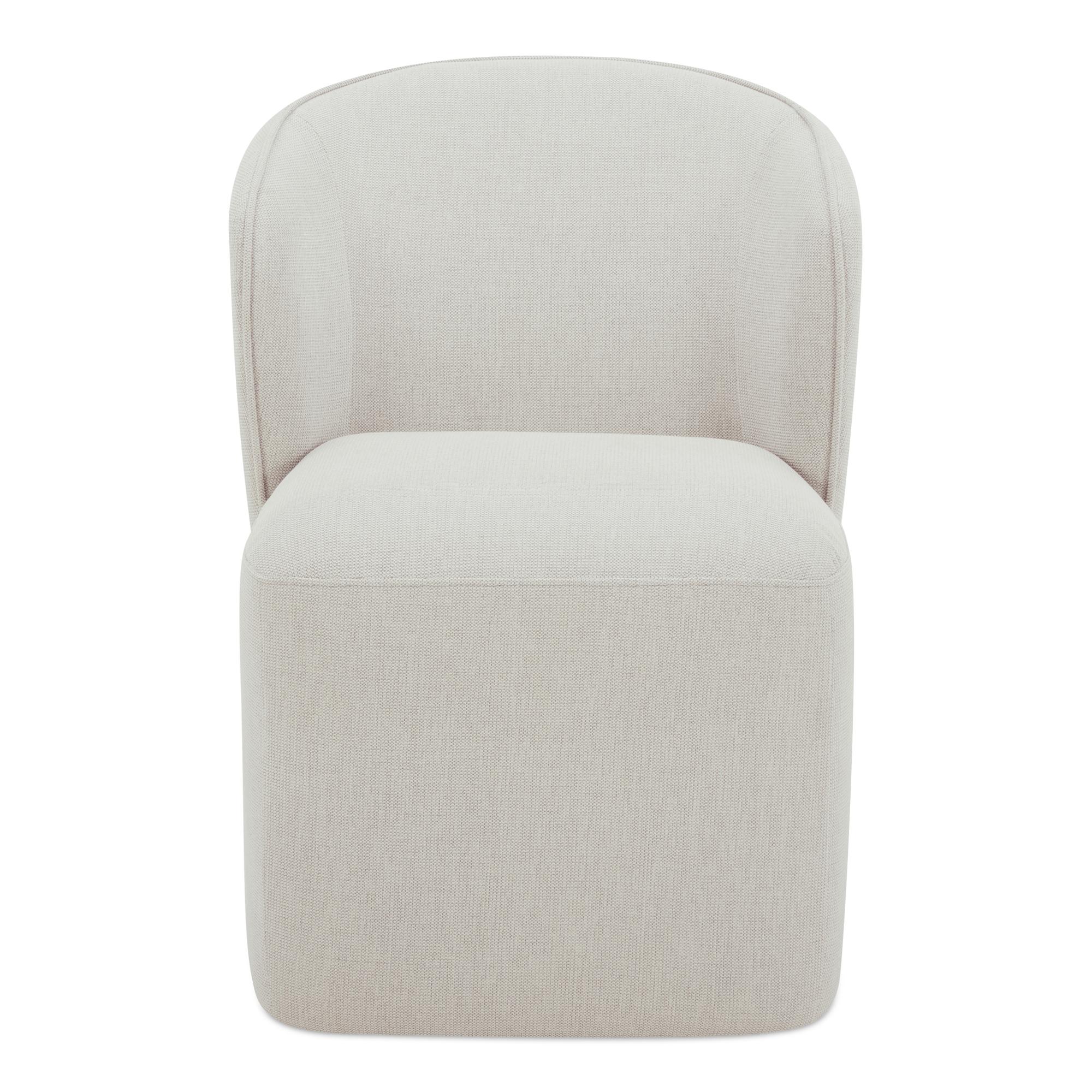 The Larson rolling dining chair is as much about comfort as it is about modern sensibility, with a generously padded seat and backrest, graceful silhouette, clean lines, curved back, rounded square seat, caster wheels and high-performance fabric upholstery that protects against stains, spills, and wear and tear.